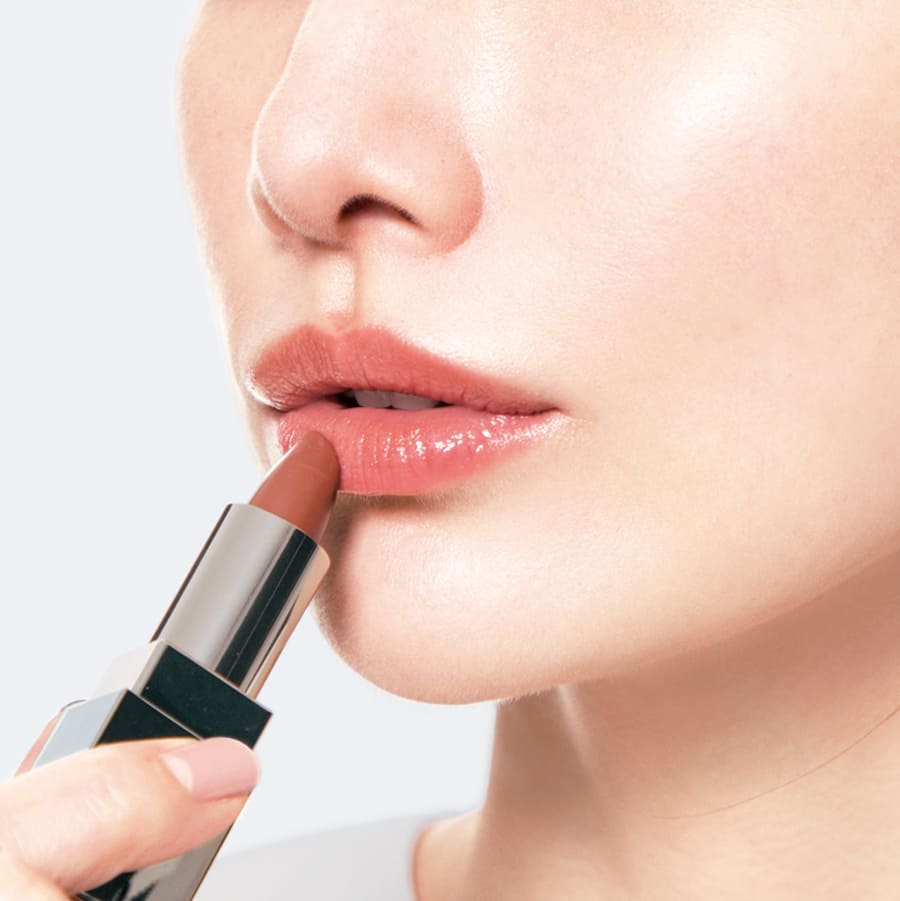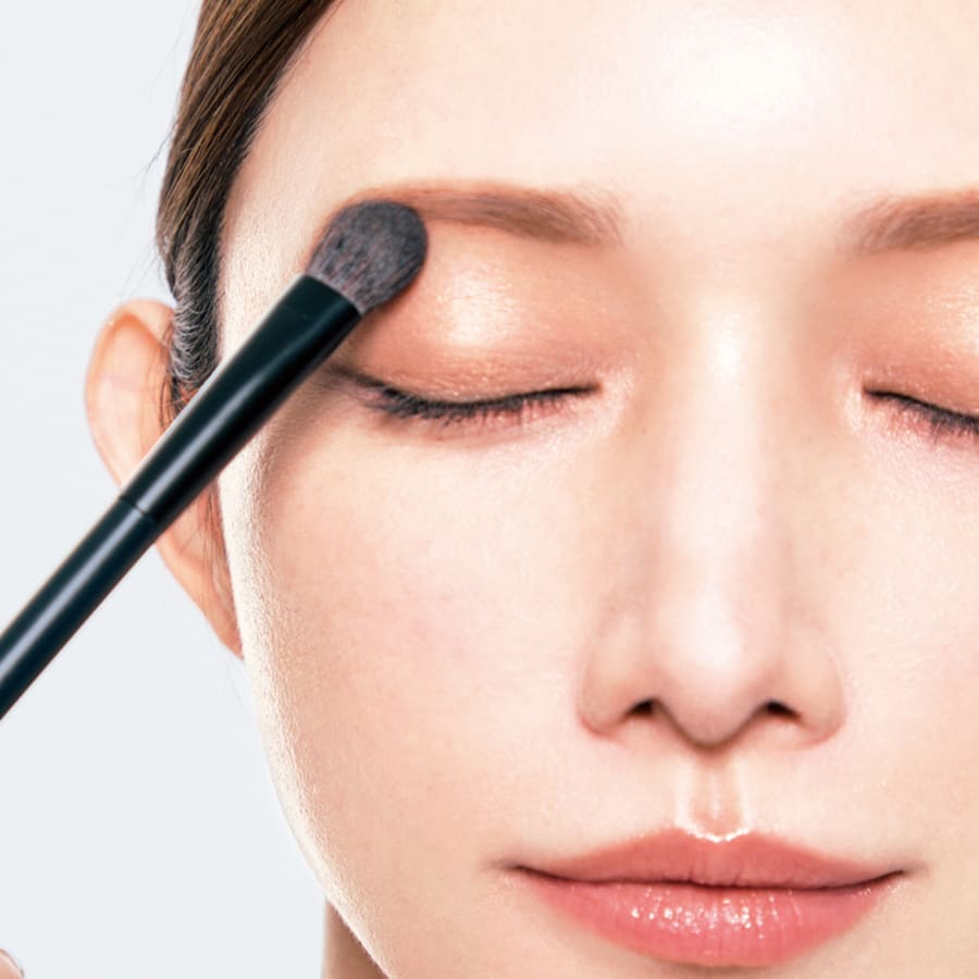 繊細な質感でシアーに発色するブラウンは、丸筆で眉下までのまぶた全体に広くふわっとのせて。目の際には再度重ねてキリリと引き締め効果を。