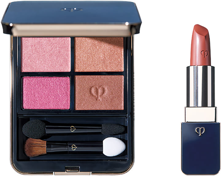 左:「陰影が出すぎるので敬遠しがちなブラウンもこの発色なら肌なじみがよく使いやすい。ピンクとのグラデが可愛い♡」オンブルクルールクアドリ 503<限定発売>¥10,340 ※ケースとセット価格、右:「色と質感の微差展開がスゴイ!今日は目元に合わせたブラウンベージュで上品&ヘルシーに」ルージュアレーブル 24 ¥7,150 ※ともに8月21日発売。ク>