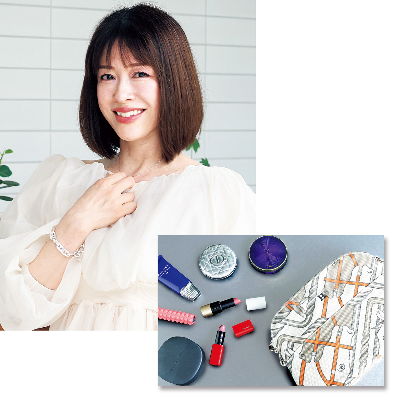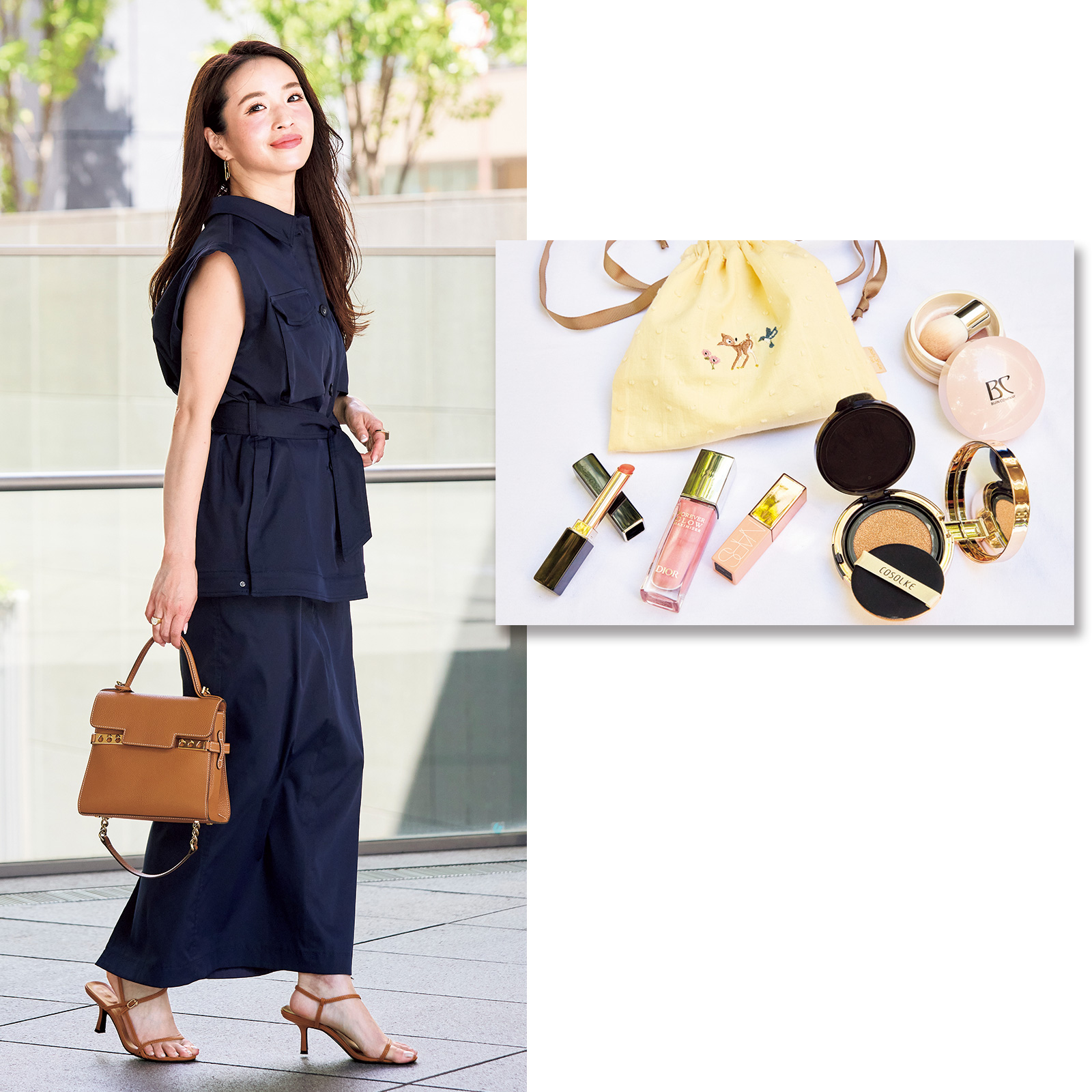 ハイブラコスメはポーチに入っているだけで気分があがります。リップはルージュエルメス 18、ハイライトはディオールのスキン フォーエヴァー グロウ ルミナイザー 03。韓コスも大好きで、CLIOのプロ アイ パレット エアーやダーマファクトリーの日焼け止めを愛用しています。