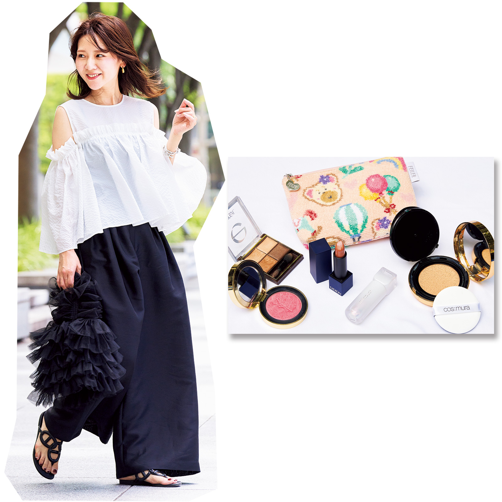 ハイブラとプチプラを賢く使い分ける関西リュクス。ポーチの中身を覗いてみると、信頼のデパコスやベスコス名品、韓コスで流行を取り入れ、コスパのいいドラコスを使いこなしていました!