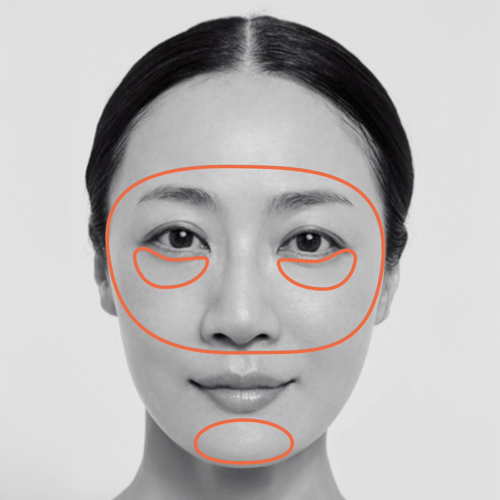 茶グマ青グマを隠したい場合は、オレンジで目周りの血色を上げ、広めに塗ることで違和感なくカバーできます。顎にもオンすると顔色も明るく。