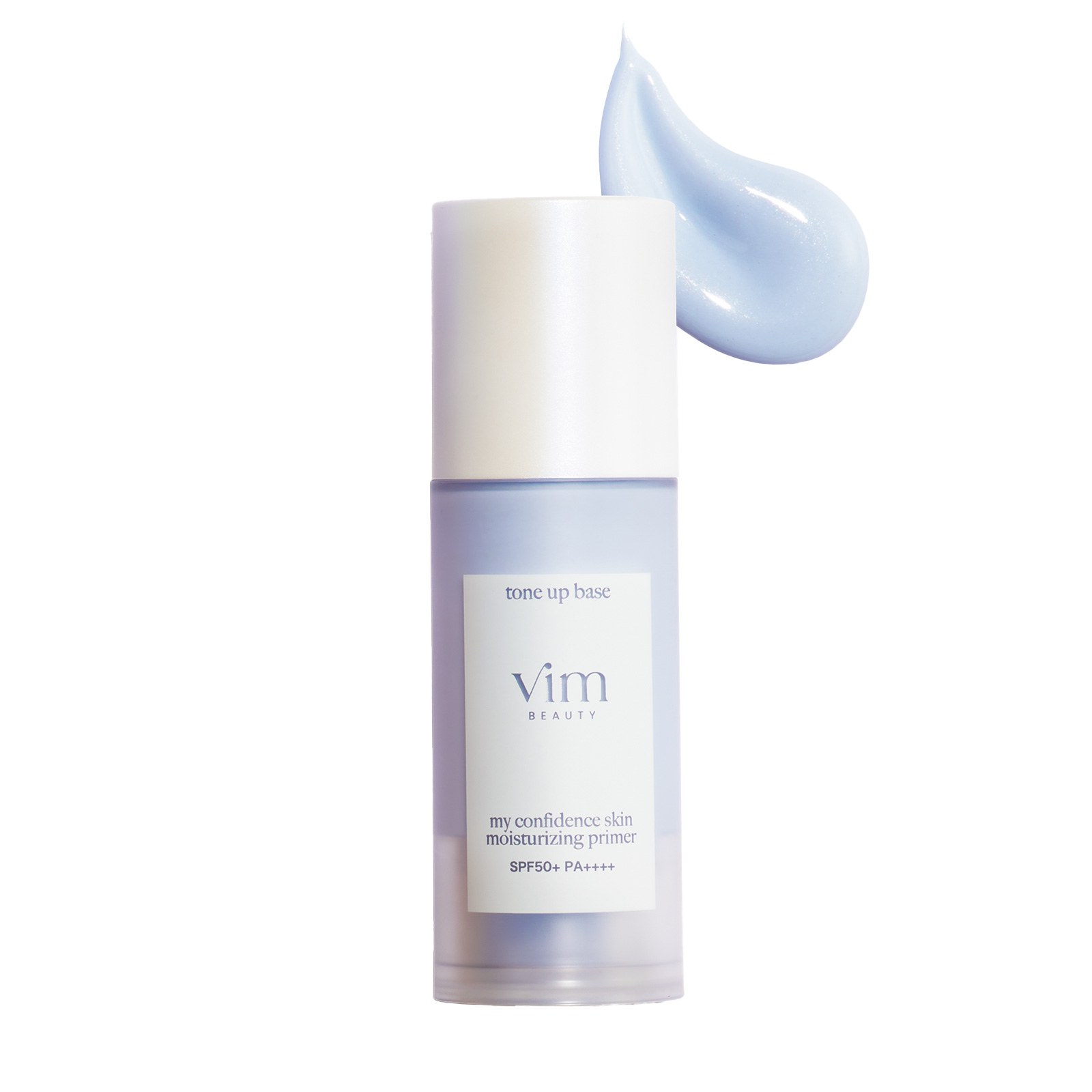 シルバーパールの発光効果で悩みをカバー。薄づきなブルーで大人にも使いやすい。マイ コンフィデンス スキン モイスチャライジング プライマー スノウベール SPF50+・PA++++ 30ml ¥2,750(vim BEAUTY)