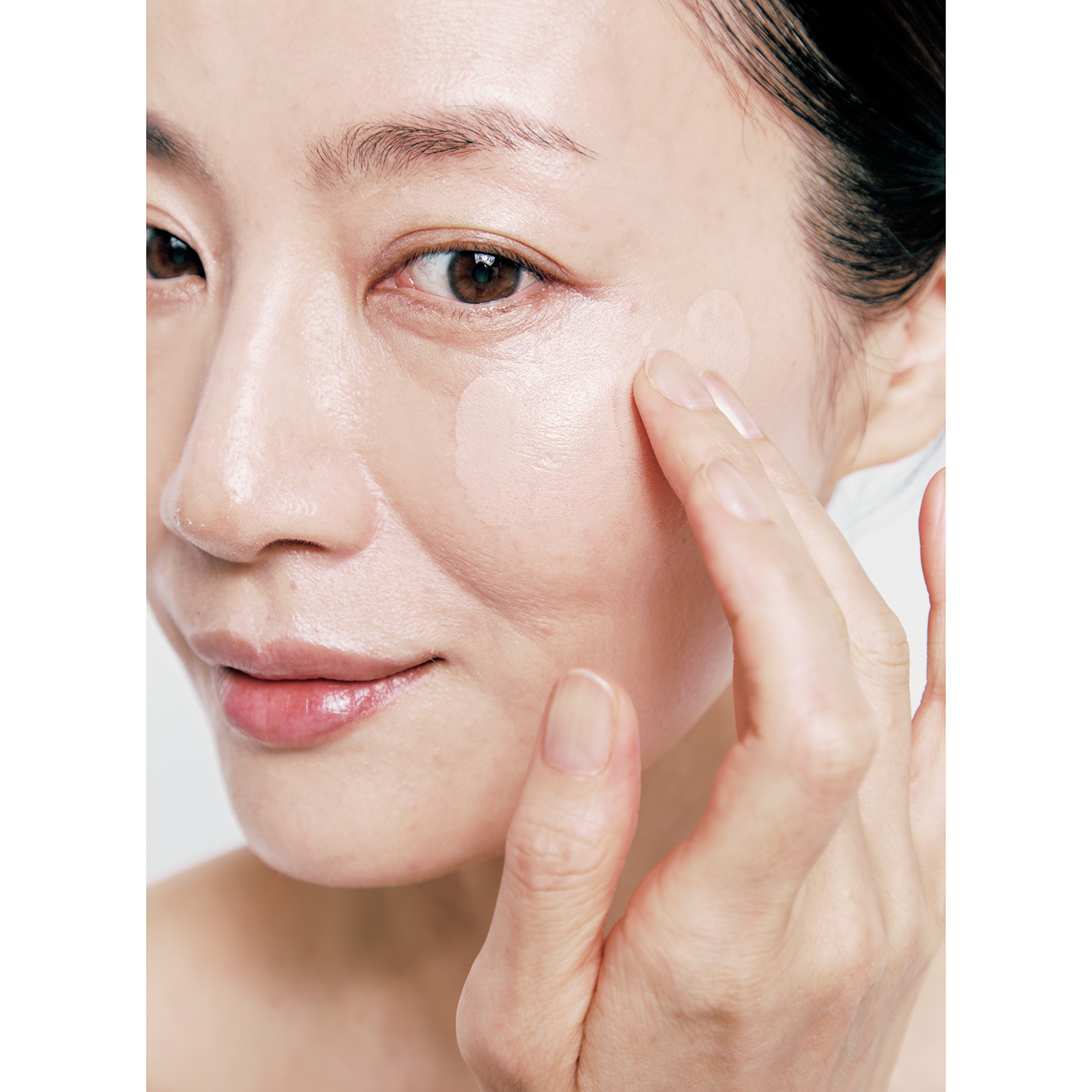 指に取ったら気になる部分に馴染ませます。色はファンデよりやや明るめに。なめらかな質感だから目周りなど細部にも重宝。肌ノイズをカバーしながら軽やかに仕上がります。