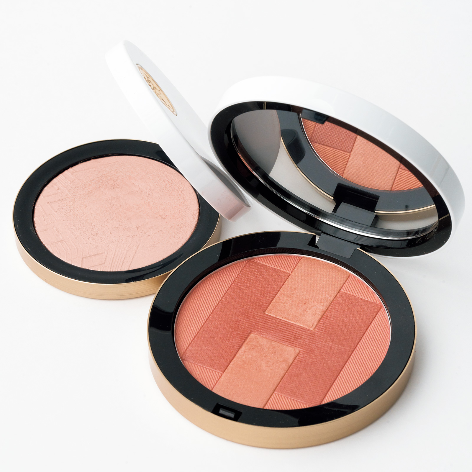 エルメスのチーク10番とハイライト02番はピンクゴールド系。特にチークは赤みがあり、血色のあるハリ肌が叶います。