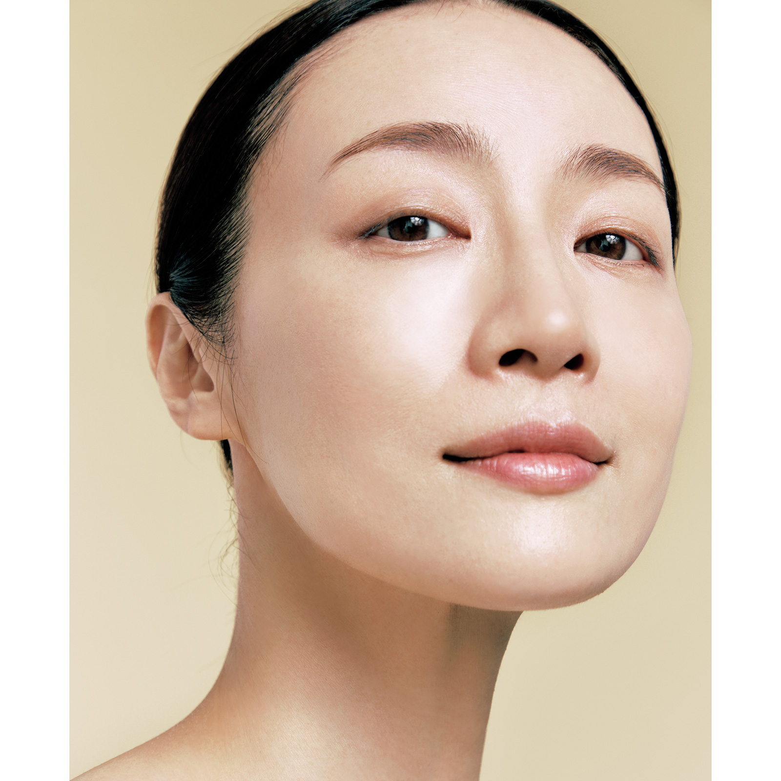 パウダーをのせるのは、Tゾーンから鼻周り、顎先までのテカリが気になる部分を中心に。頰のツヤは残します。肌を優しくなでるようにパフを滑らせ、薄膜に仕上げて。