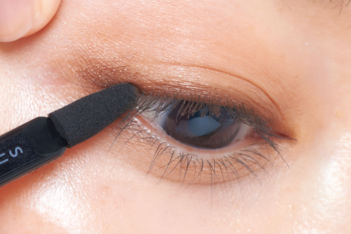 キワにシアーな締め色を細く引いてナチュラルに目力をアップさせます