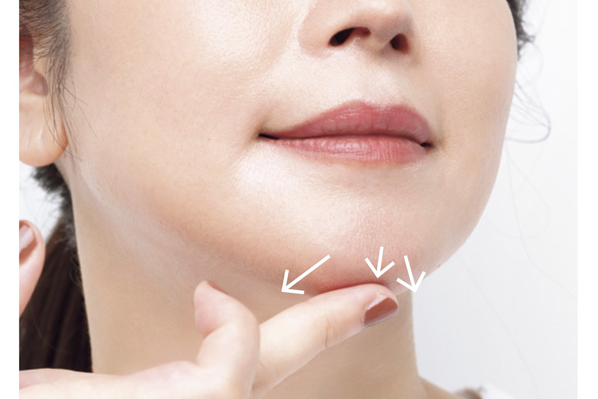 アゴ先は顔を正面から見た時にシェーディングが見えるか見えないかくらいギリギリのアゴ下にのせたら、奥に向かって伸ばします。