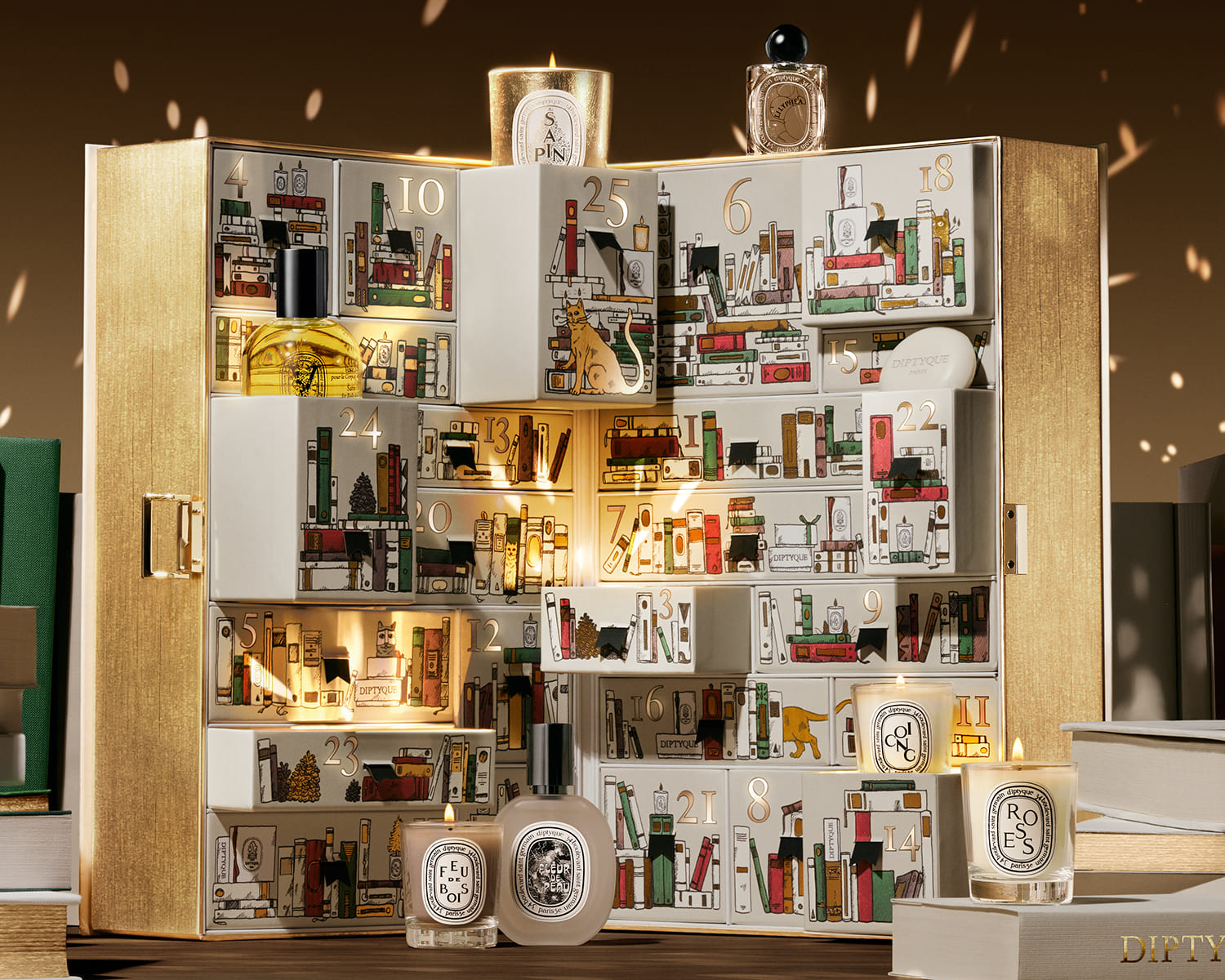 Diptyque(ディプティック)の2025年のアドベントカレンダーはおとぎ話がテーマ。ゴールドの輝きを纏う本の形のボックスには、25種類のアイテムが隠れています。1日ずつ訪れる新しい香りとの出会いが、ホリデーシーズンを盛り上げます。