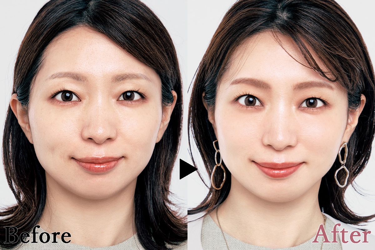 眉毛は眉上ではなく“下に描き足す”が目ヂカラアップのコツ。眉の上に描くと眉と目の距離が離れ、それぞれが独立した印象に。目に近づけるように、眉下に描き足して。