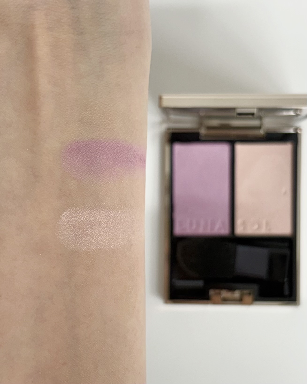 グレイッシュなベージュにバイオレットの光がつやめくモーヴスモーク