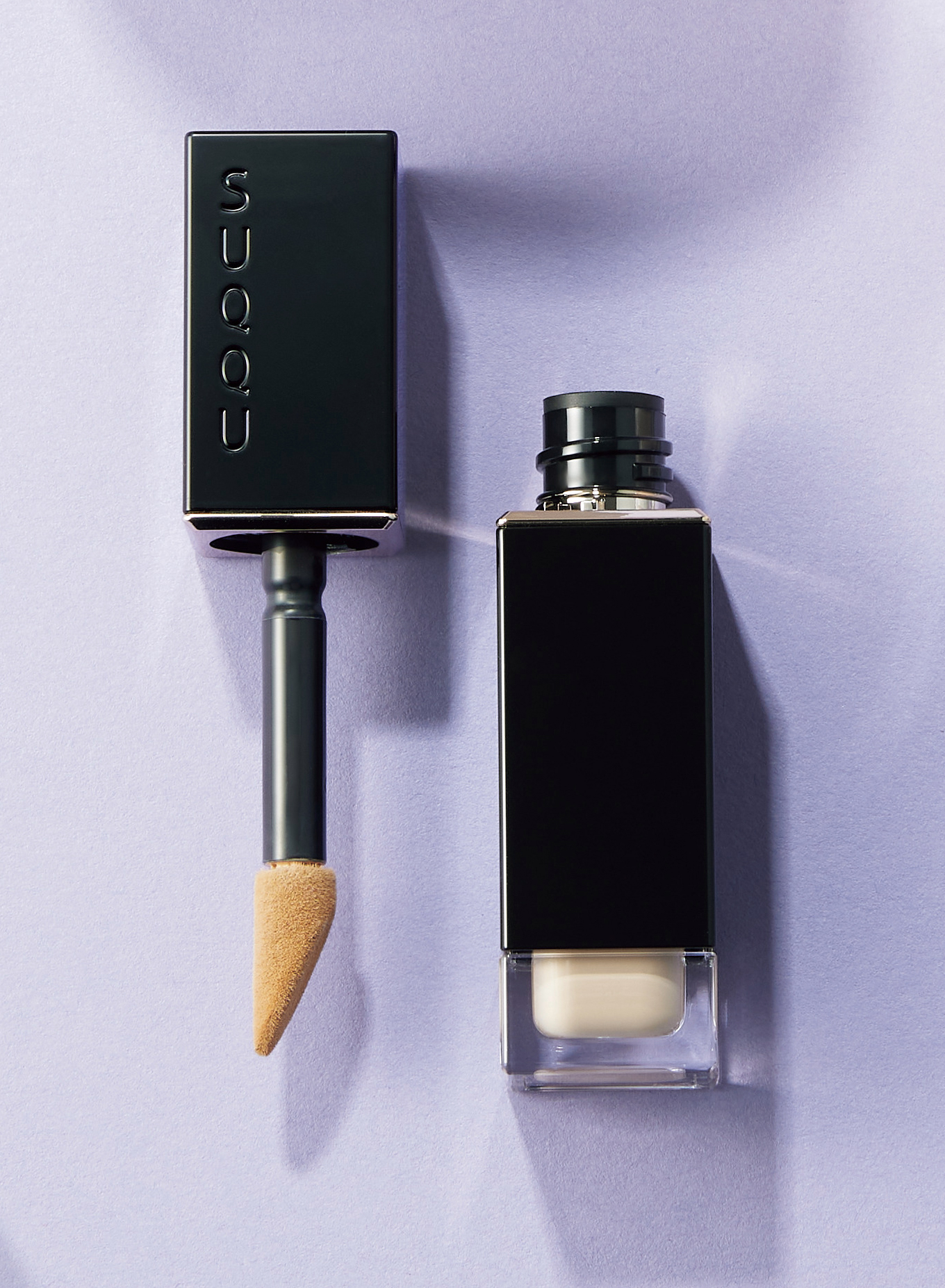 「これ一品でお肌が完成してしまうかも!/中野さん」。薄膜カバーとツヤ、なめらかさをすべて搭載した新製法。自然なツヤがベースメークを生かしたまま、肌悩みは瞬時にカバー。全10色 4.4g ¥5,500(SUQQU)