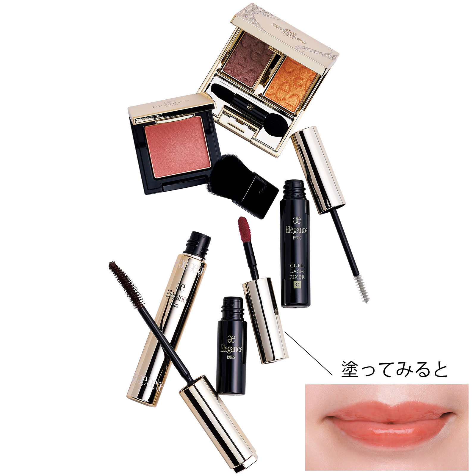 フランス語で「ひと目惚れ」を意味する名前がついた、優美なトータルメイクコフレ。2色が美しく溶け合うアイシャドウや、存在感のあるまつ毛に仕上げるマスカラとマスカラ下地、ぷるっとリッチな質感のルージュ、肌のトーンを問わずに使いやすいフェイスカラーがセット。エレガンス コフレ クードゥフードル ¥8,250(エレガンス コスメティックス)