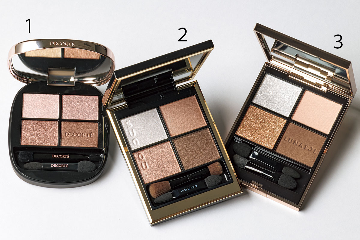 パールとツヤの質感の異なるベージュブラウンの4色。¥7,700(コスメデコルテ)