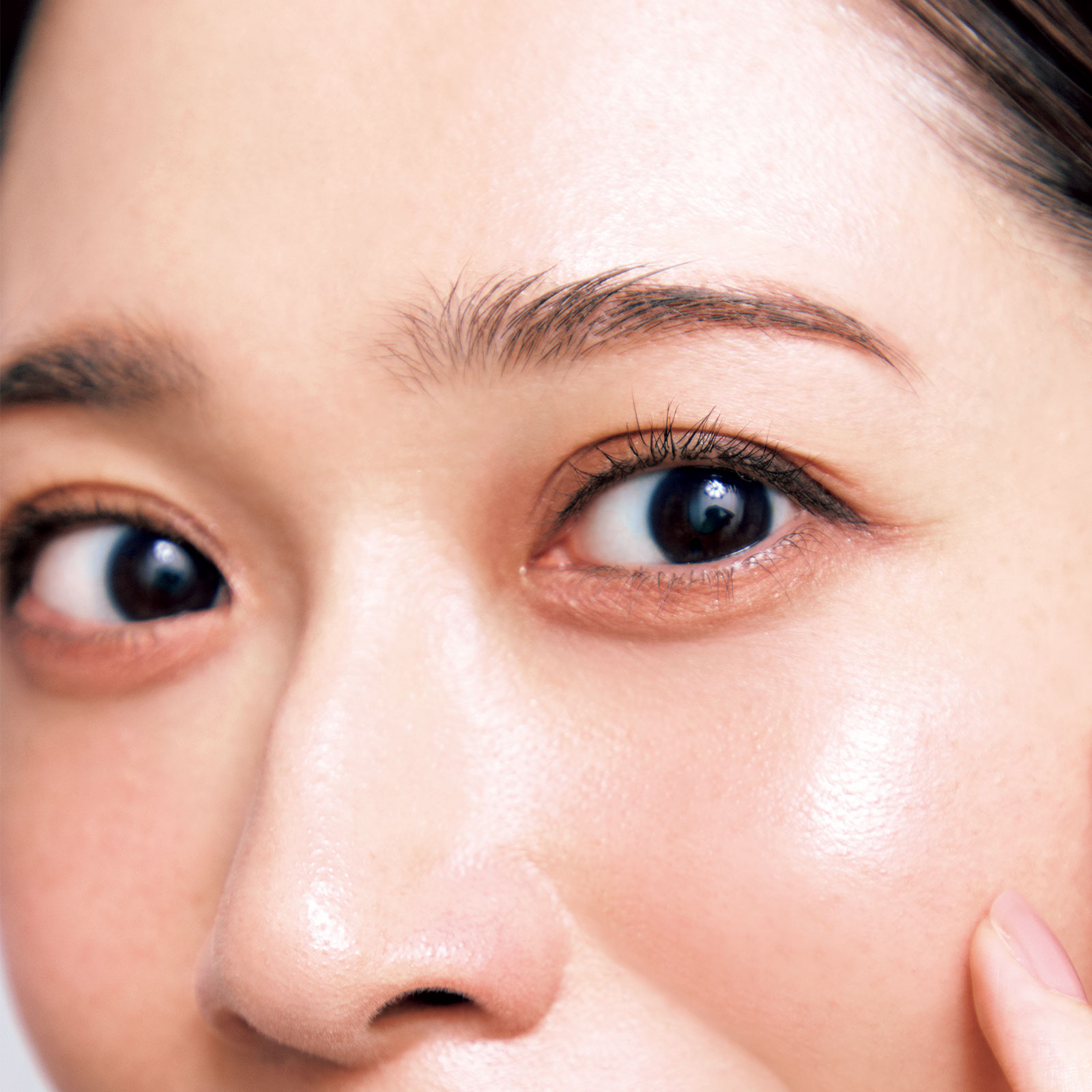 涙袋1cm下から小鼻横までの幅に直塗り。指を上下に動かしながら顔の中心に馴染ませると小顔効果抜群。