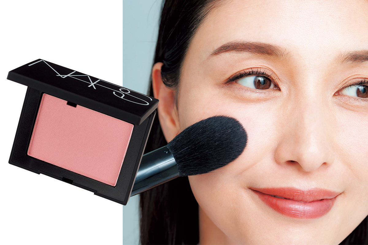 超微粒子で微細な質感のパウダーが、シアーに発色。肌のアラもソフトフォーカス。練りチークよりひと回り大きめに重ねます。NARS ブラッシュ N 903 4.8g ¥5,060(NARS JAPAN)