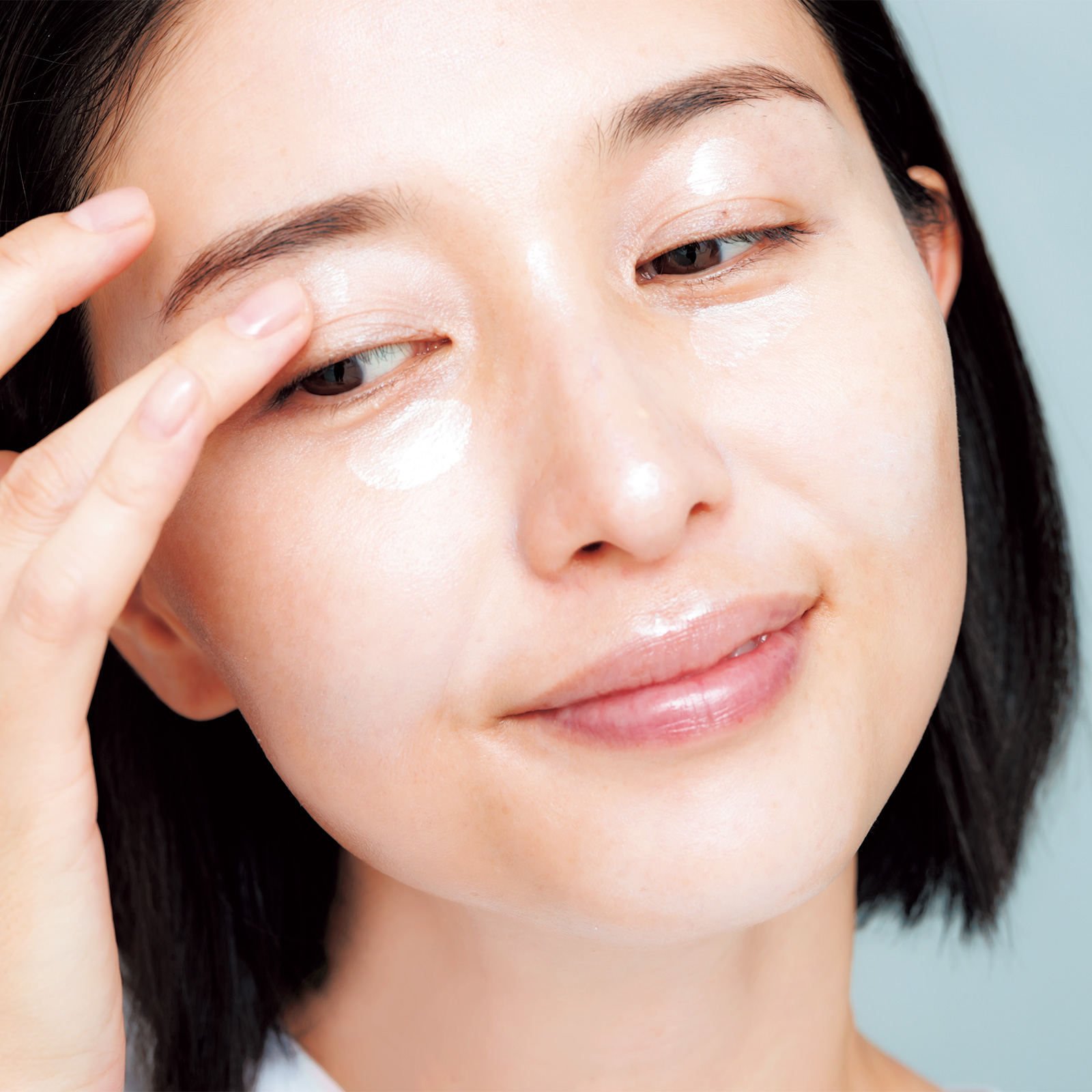 目周りの凹みがたるみを強調することも。ファンデ前にリキッドハイライターを仕込めば、内側から輝きふわっと見えます。鼻根や頰骨、唇の上にも少量のせてさらに立体的に。