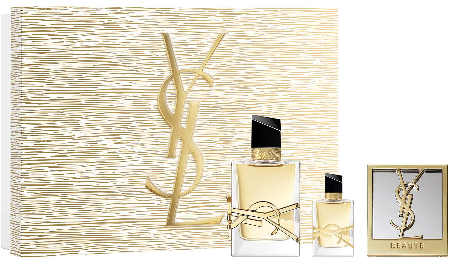 セクシーでクールなフローラルラベンダーの香り、YSL No.1フレグランス「リブレ」を堪能できるセット。50mlサイズと携帯できるサイズの7.5mlの「リブレ」と、大胆にカサンドラロゴを施したゴールドのミラーがイン。