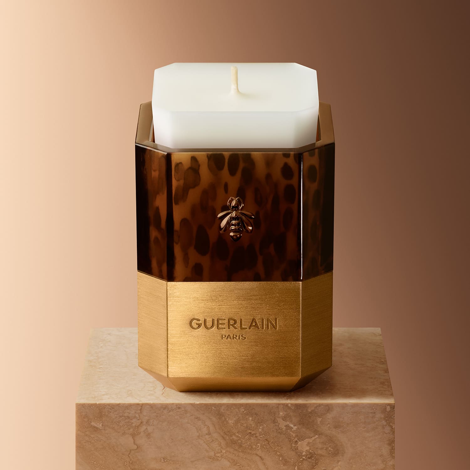 キャンドルはリフィルとジャーを自由にカスタマイズでき、オリジナルの刻印を入れることも可能。キャンドルを収めるバイカラーのジャーには、ブラッシュドゴールドの優雅な質感と、「ゲルリナーデ」の素材に着想を得たカラーやモチーフが融合。ローズの花びらを思わせるピンク、太陽を浴びたベルガモットの果皮を模したイエロー、ジャスミンの茎をイメージしたグリーン、ヴァニラの花の汚れなき純白を連想させるクリームホワイト、アイリスの花のような深みのあるブルー、そしてトンカビーンの模様に着想を得たレオパード柄がラインナップしました。