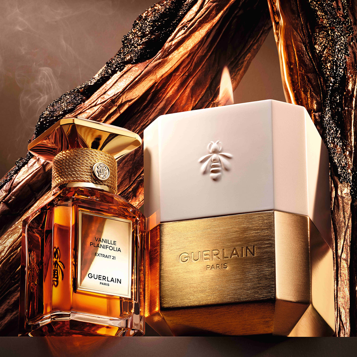 ゲランを象徴するヴァニラを惜しげもなく配合して最大限に高めたのは、人々を魅了する甘やかな香り。調香師デルフィーヌ・ジェルクは、貴重なヴァニラチンキにウッディノートとスモーキーノートを添え、ヴァニラのグルマンなファセットを引き立てました。パリ・シャンゼリゼ通り68番地に位置する本店のラウンジの温かな空気を想起させる、魔法のささやきを秘めた香りです。