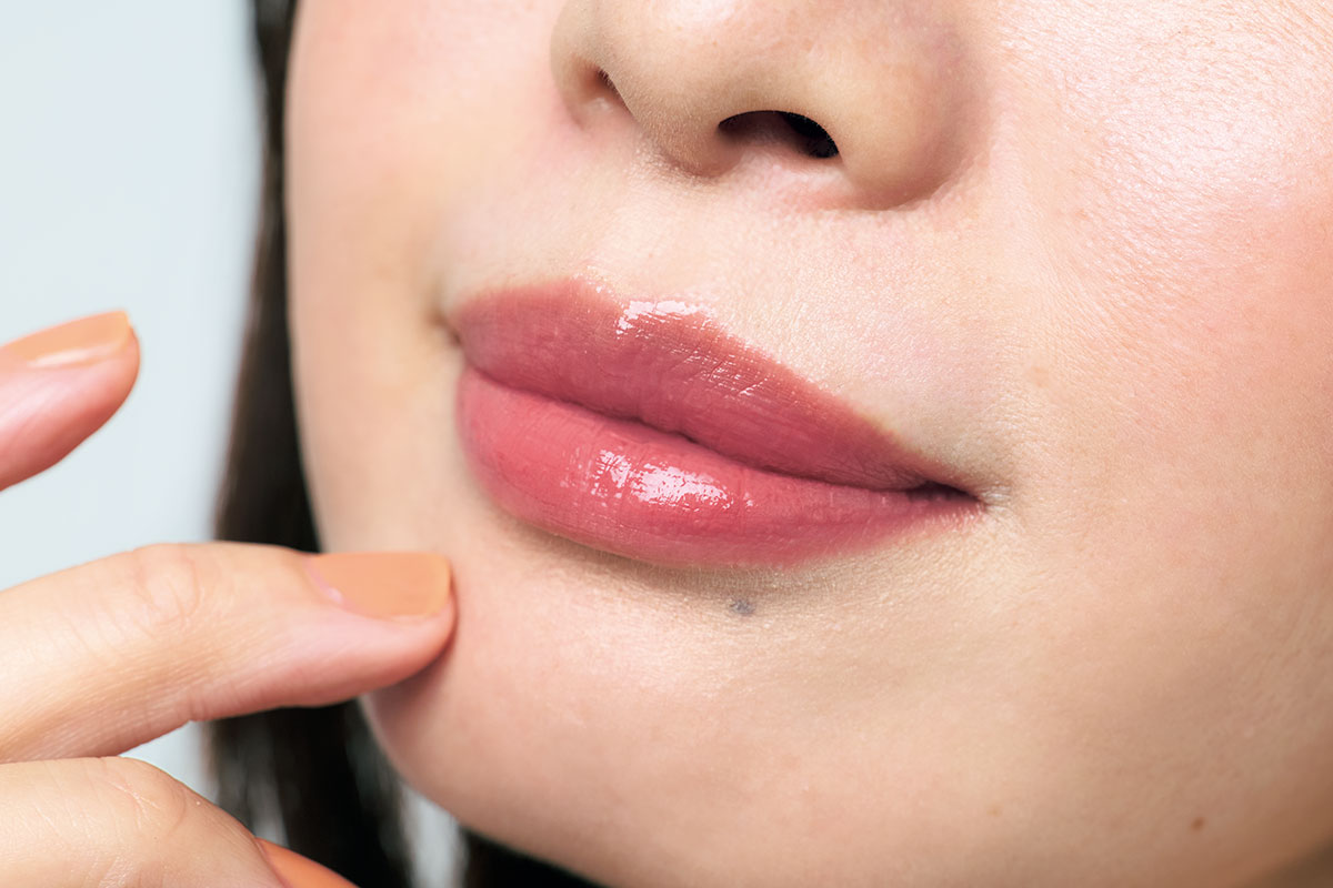 粘膜カラーを使うとくすみがちなので、透明感と血色を引き出すローズ系が正解。むっちりした唇で若見えも叶う。ブラウス¥18,700(ストラ)ピアス¥36,740(ベン・アムン/ズットホリック)