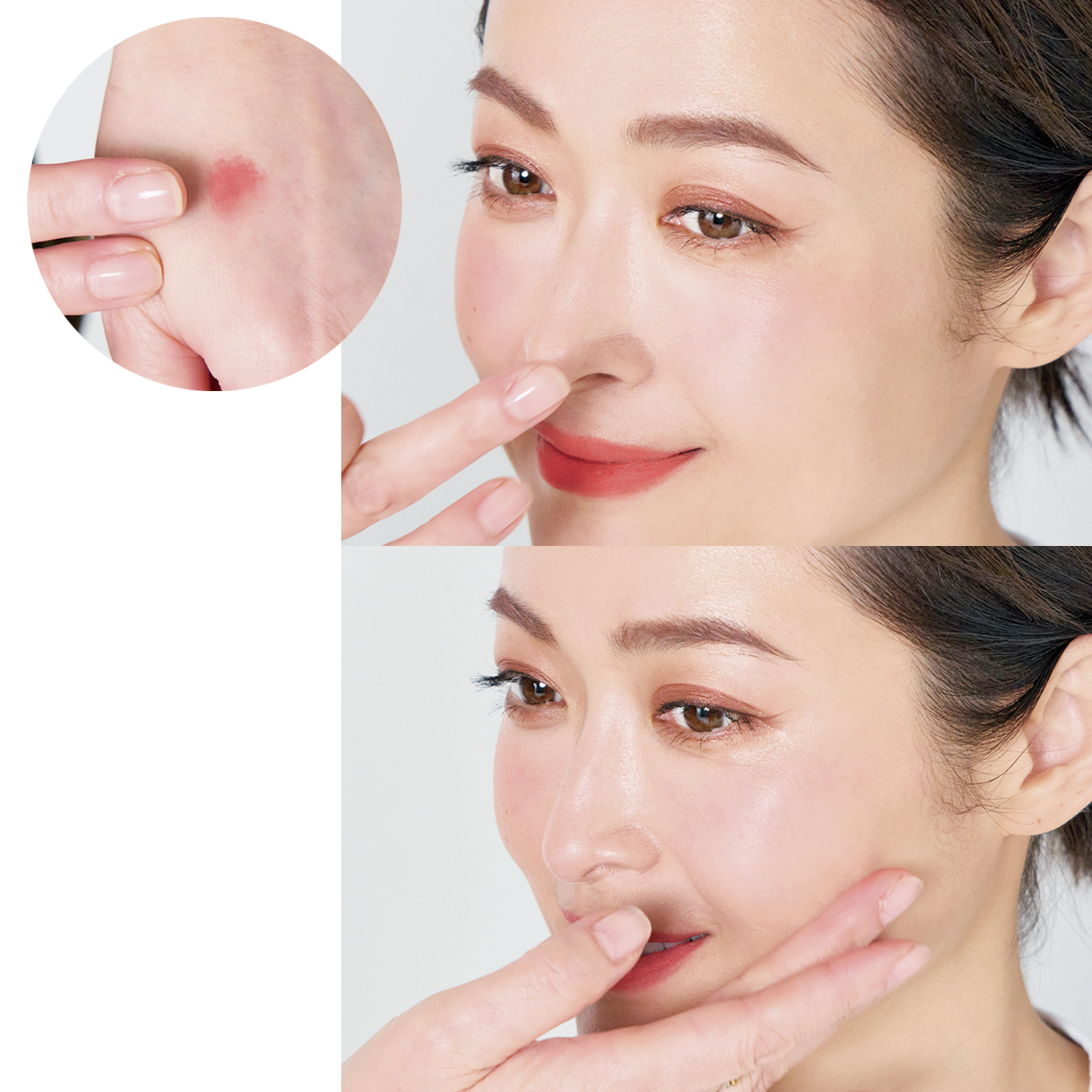 たるみやゆるみにはチークがおすすめ!小顔見えも叶い、色を重ねるだけで大人の“やりすぎない血色感”に。簡単なのに発色がキレイで、気持ちも明るくなります。