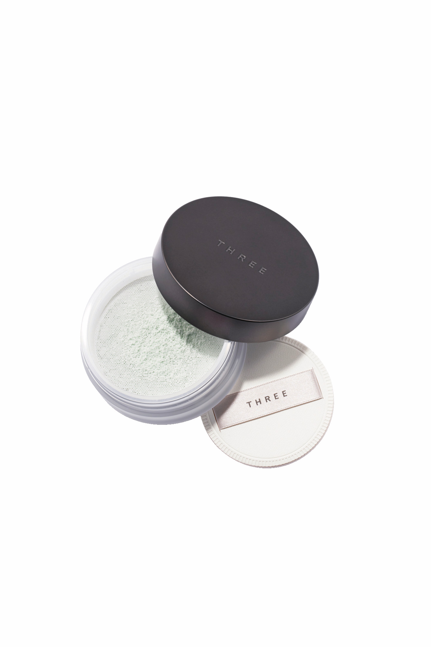 なめらかな肌を叶える逸品ルースパウダーの新色は、カラーコントロール効果があるレッドパールを配合したクリアグリーン。独自のバウンシングパウダーが汗ばむ季節にも快適なつけ心地を可能に。限定1種 ¥6,050 (THREE)