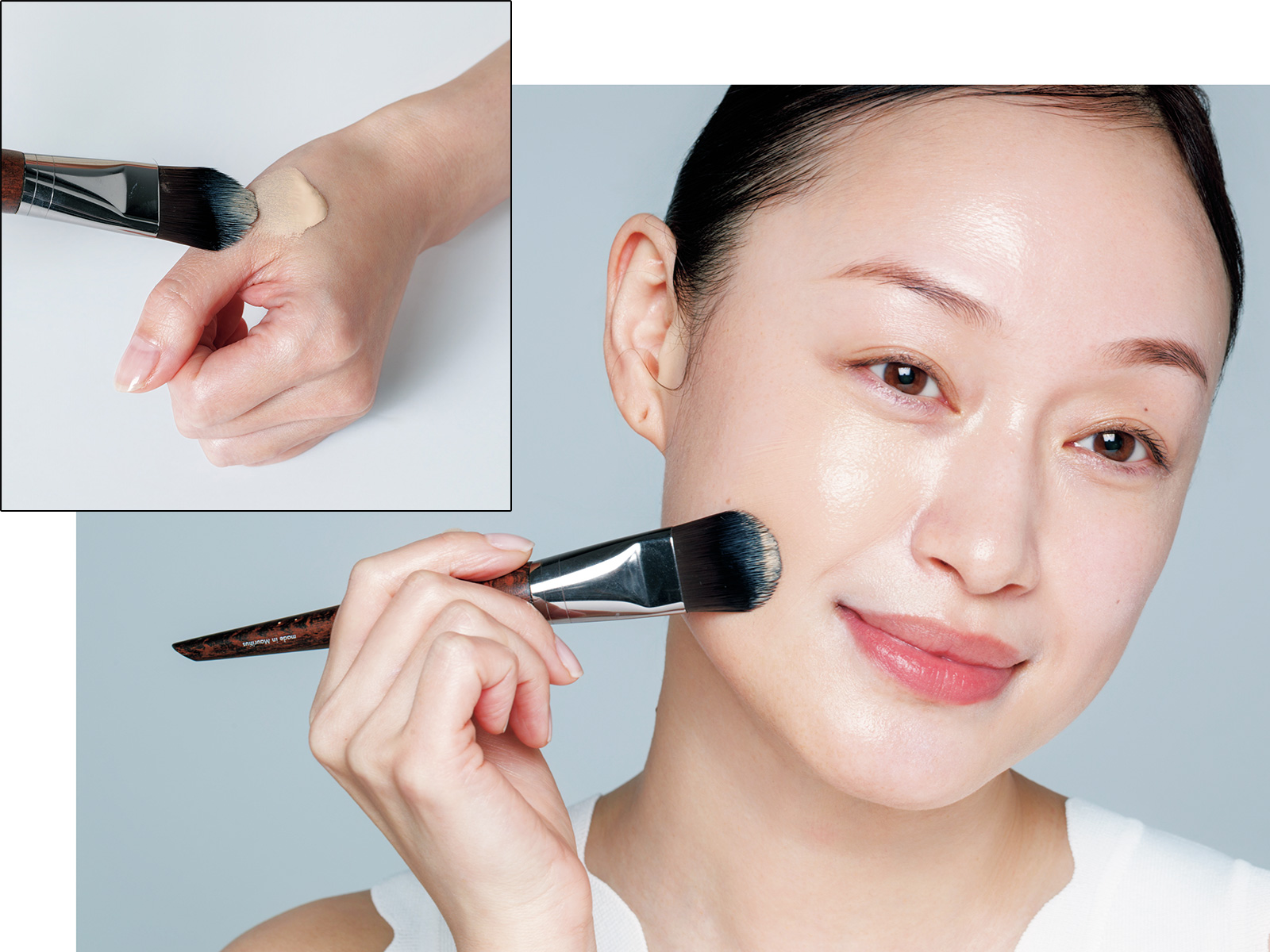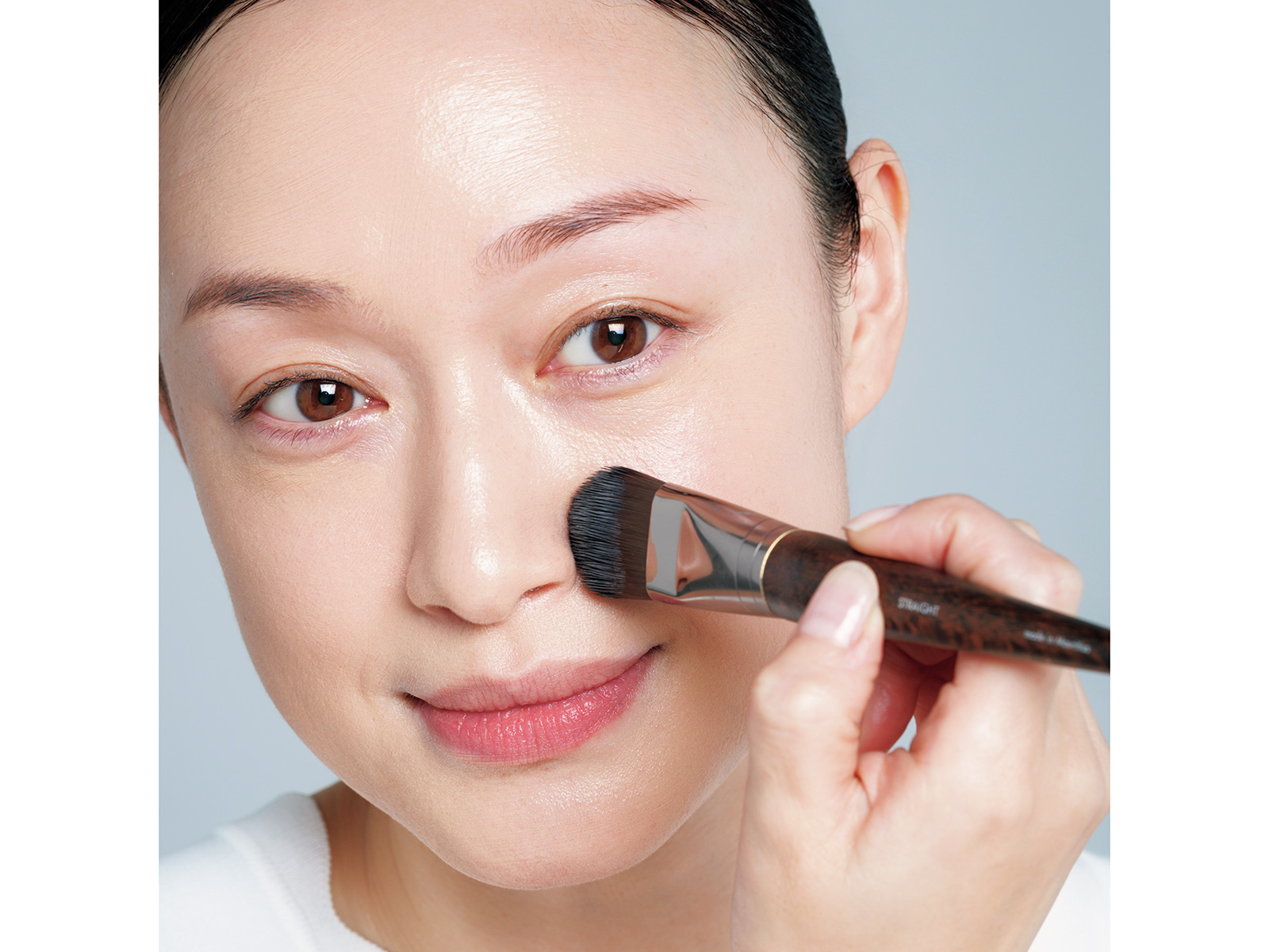ファンデは「薄く均一」に塗るのが崩れない仕上がりの大原則。ブラシで伸ばしてスポンジで仕上げる、プロ直伝の正しい塗り方をご紹介します。
