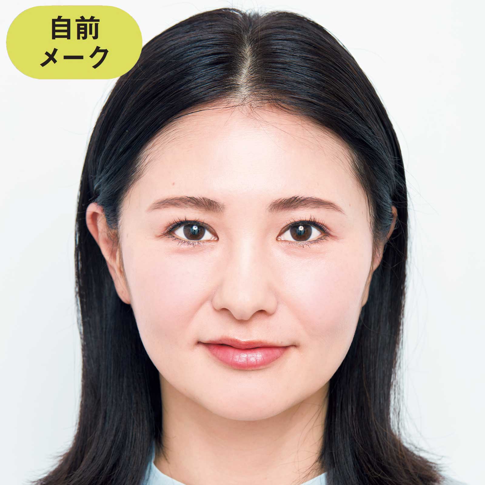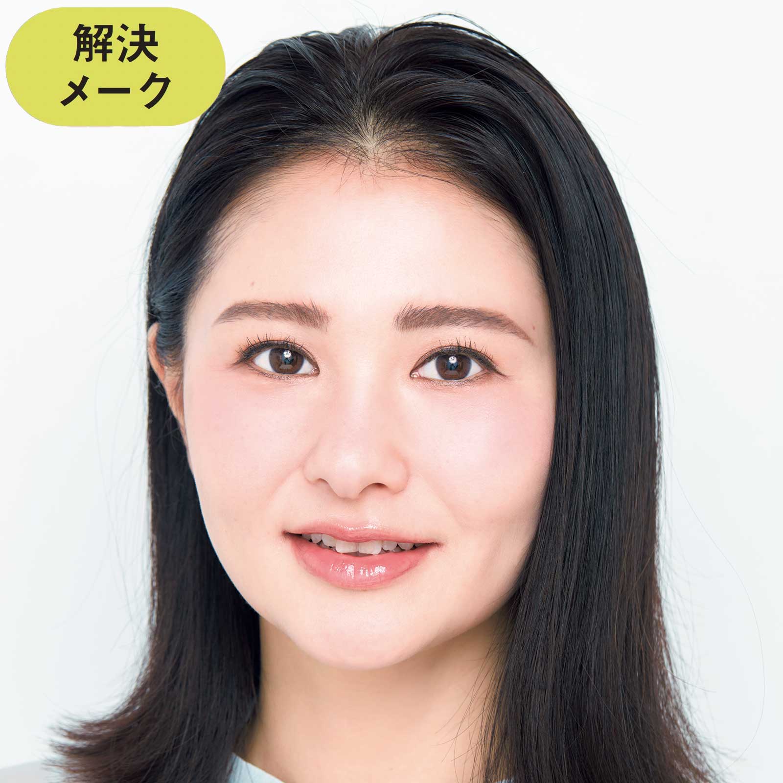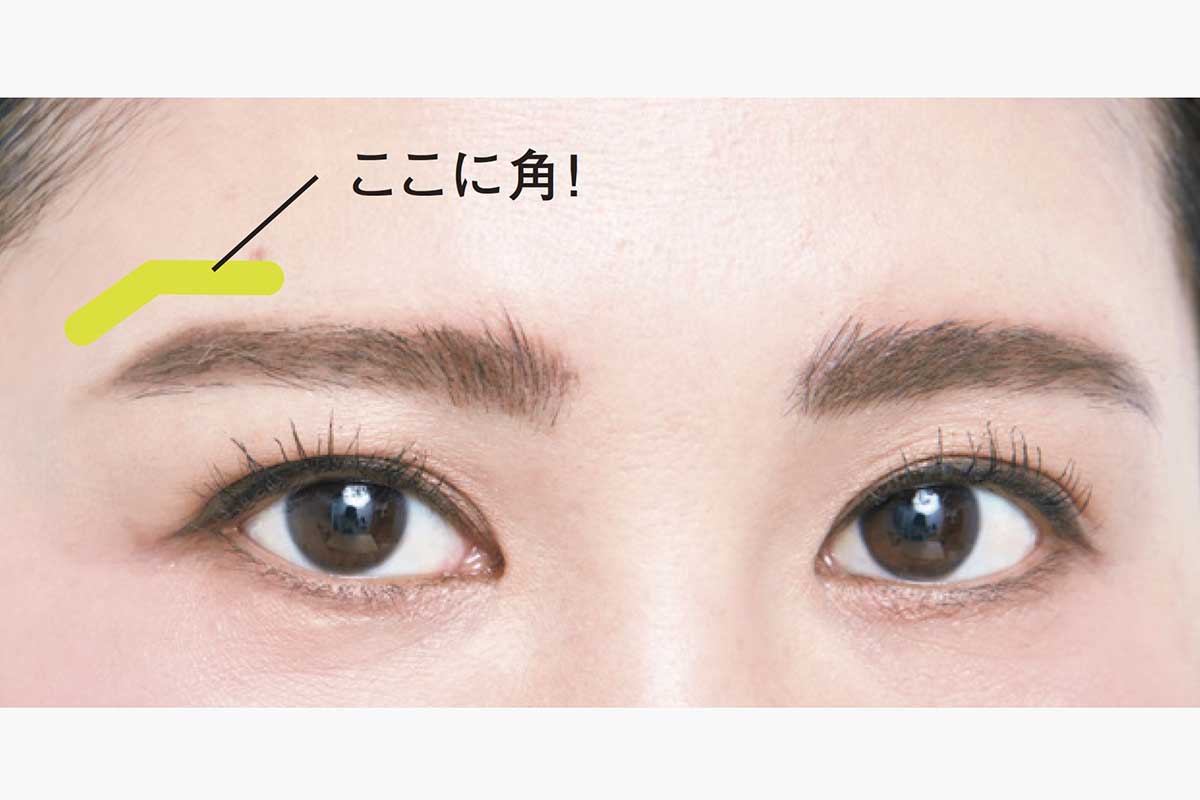 眉と目の間が詰まっているとまぶたが重たく見える原因に。平行よりも目の形に添ったアーチ眉がまぶたに抜け感をプラス。眉山をしっかり入れることで縦のラインが強調されてのっぺり感を払拭しシャープに。