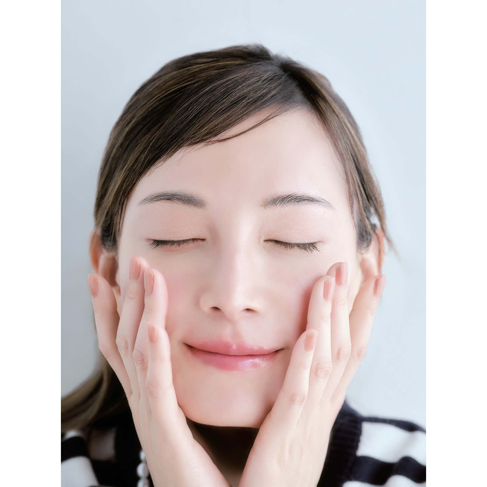 直射日光でも色や影が飛びすぎず、凹凸と血色が自然に残る。部分マットな肌が汗も皮脂も感じさせず、上品でパーツが際立つ。