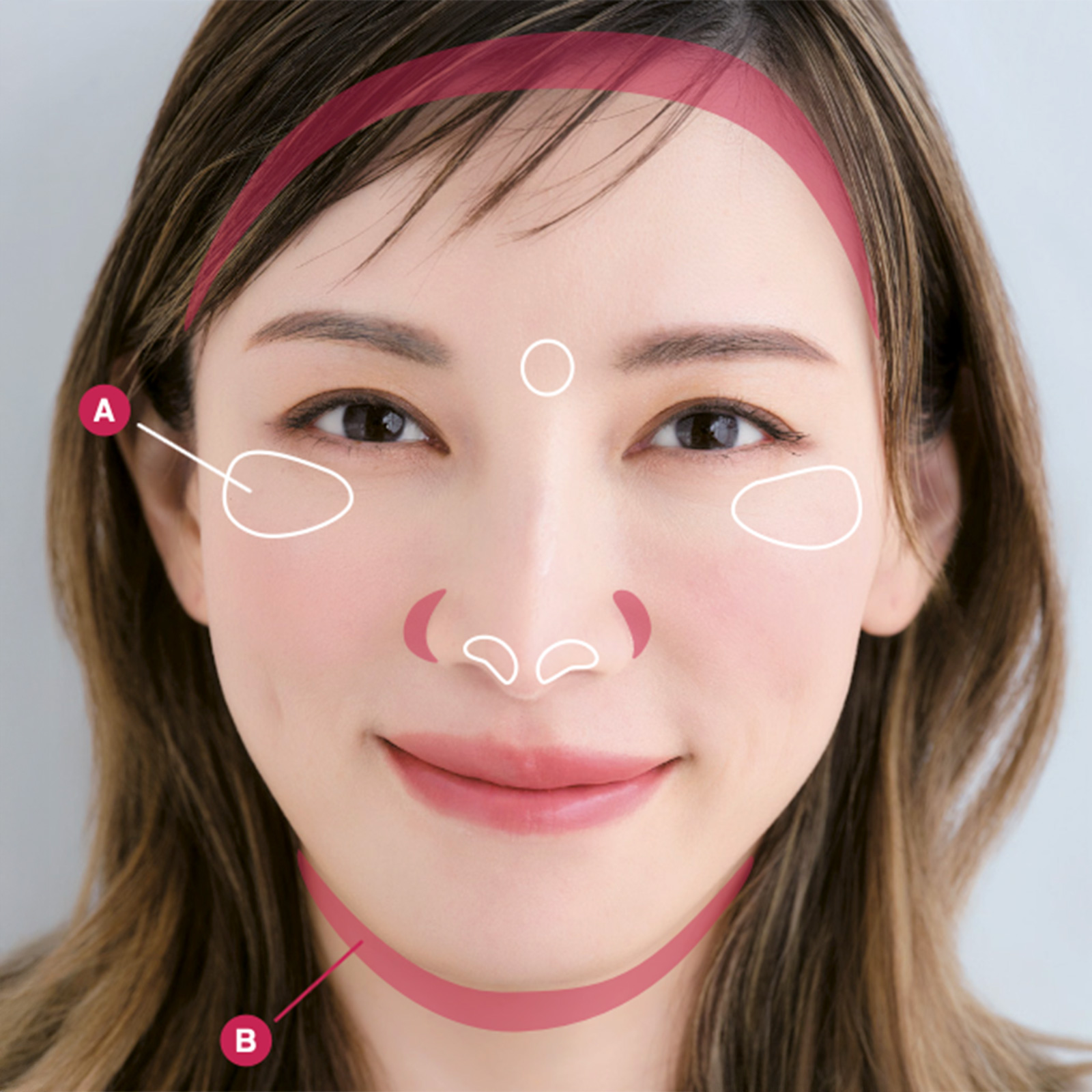 5点置きは不要! 指の腹で顔全体に伸ばす