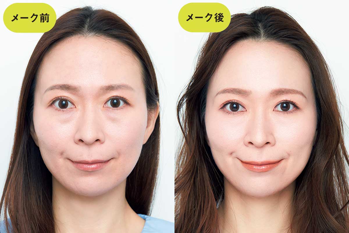 左)<メイク前>コンシーラーでも隠せません/右)<メイク後>目袋の影が薄く洗練された印象に