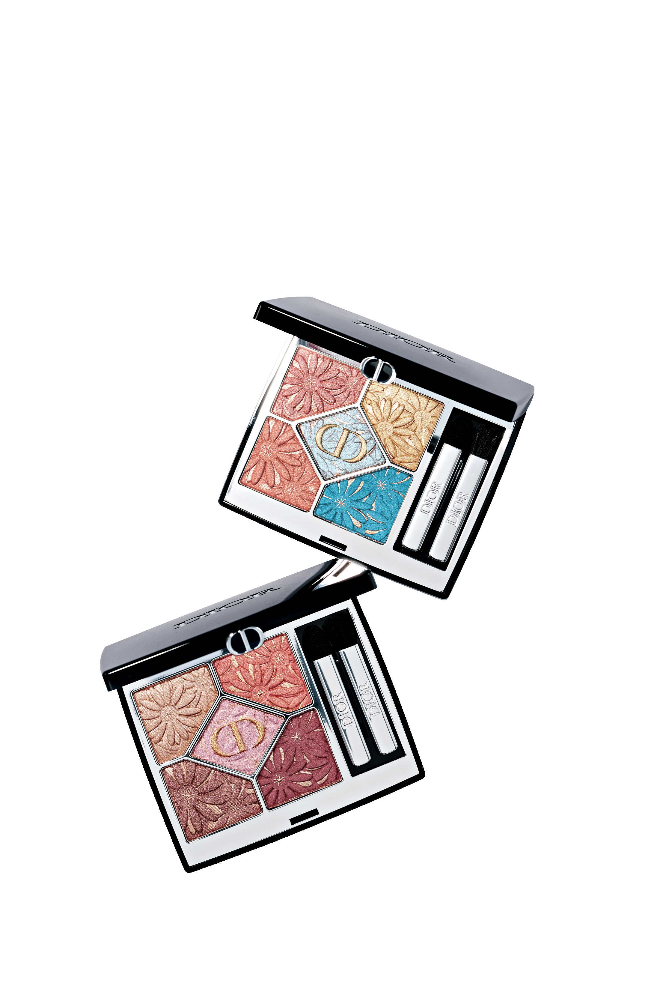 フラワープリントで、開くたびに心躍るサンク クルールの限定新作。162はスカイブルーやピーチコーラルで透明感&清涼感ある目元に。670はオレンジとブラウンが溶け合い、柔和で優しい印象に。 全2種 ¥10,010 (パルファン・クリスチャン・ディオール)