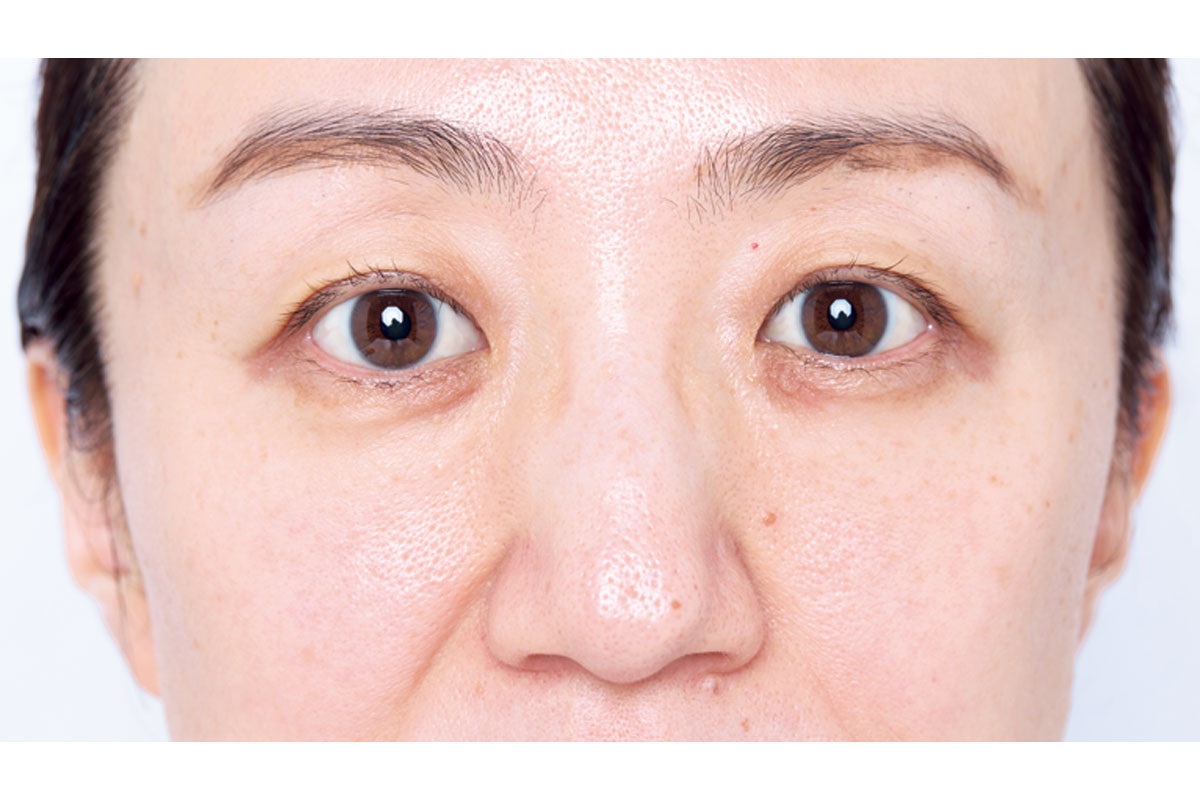 日中も潤いを感じ、乾燥によるちりめんジワが気にならなく。一番の悩みである目の下のくすみは、一度塗りでキレイにカバー。日を追うごとに全体がトーンアップしてきて、ビタミンCのパワーを実感!