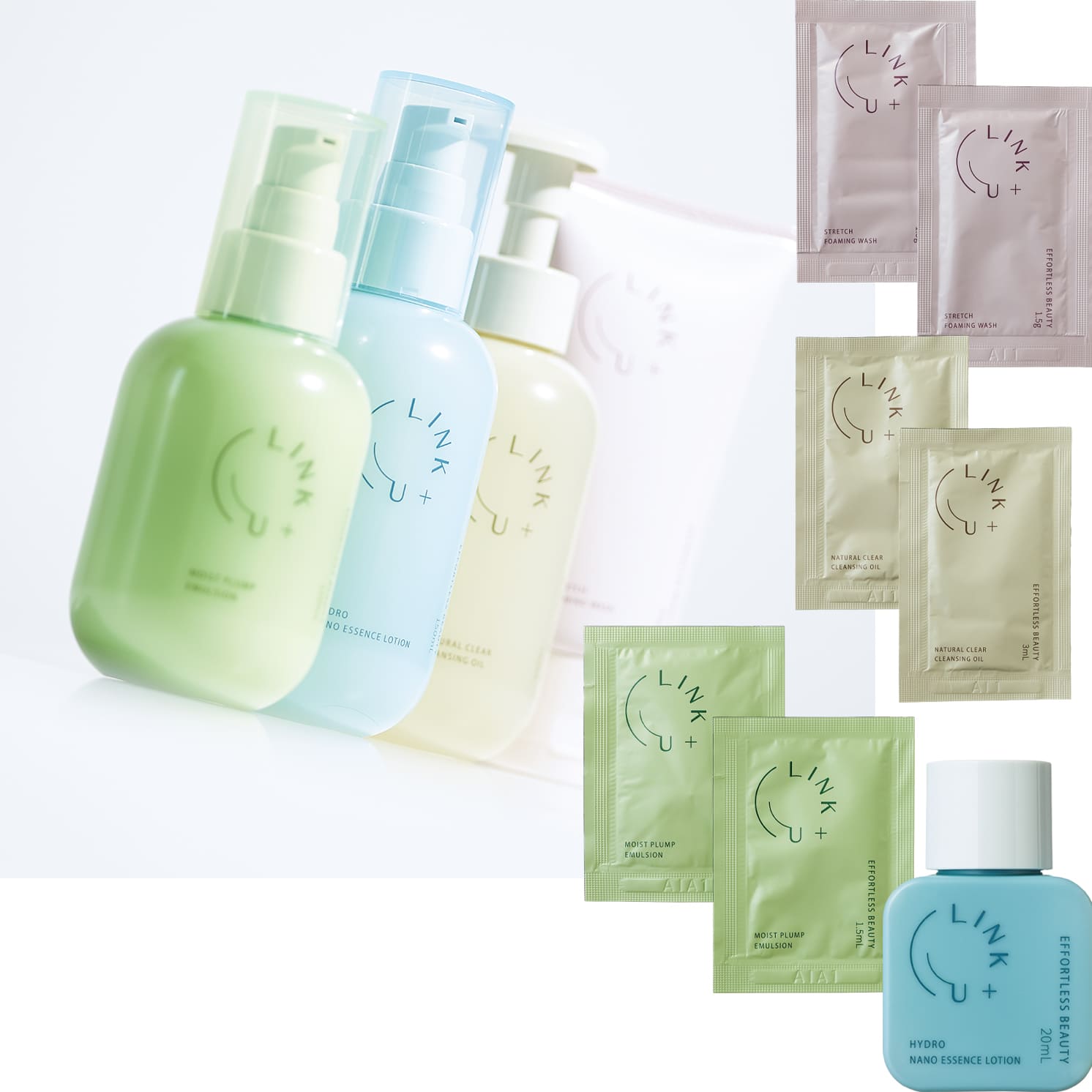 海藻と植物のチカラに着目したナチュラル×サイエンスブランドが誕生!ナチュラルクリア クレンジングオイル 3ml×パウチ2包、ストレッチ フォーミングウォッシュ 1.5g×パウチ2包、ハイドロ ナノエッセンスローション 20ml ミニボトル、モイストプランプ エマルション 1.5ml×パウチ2包