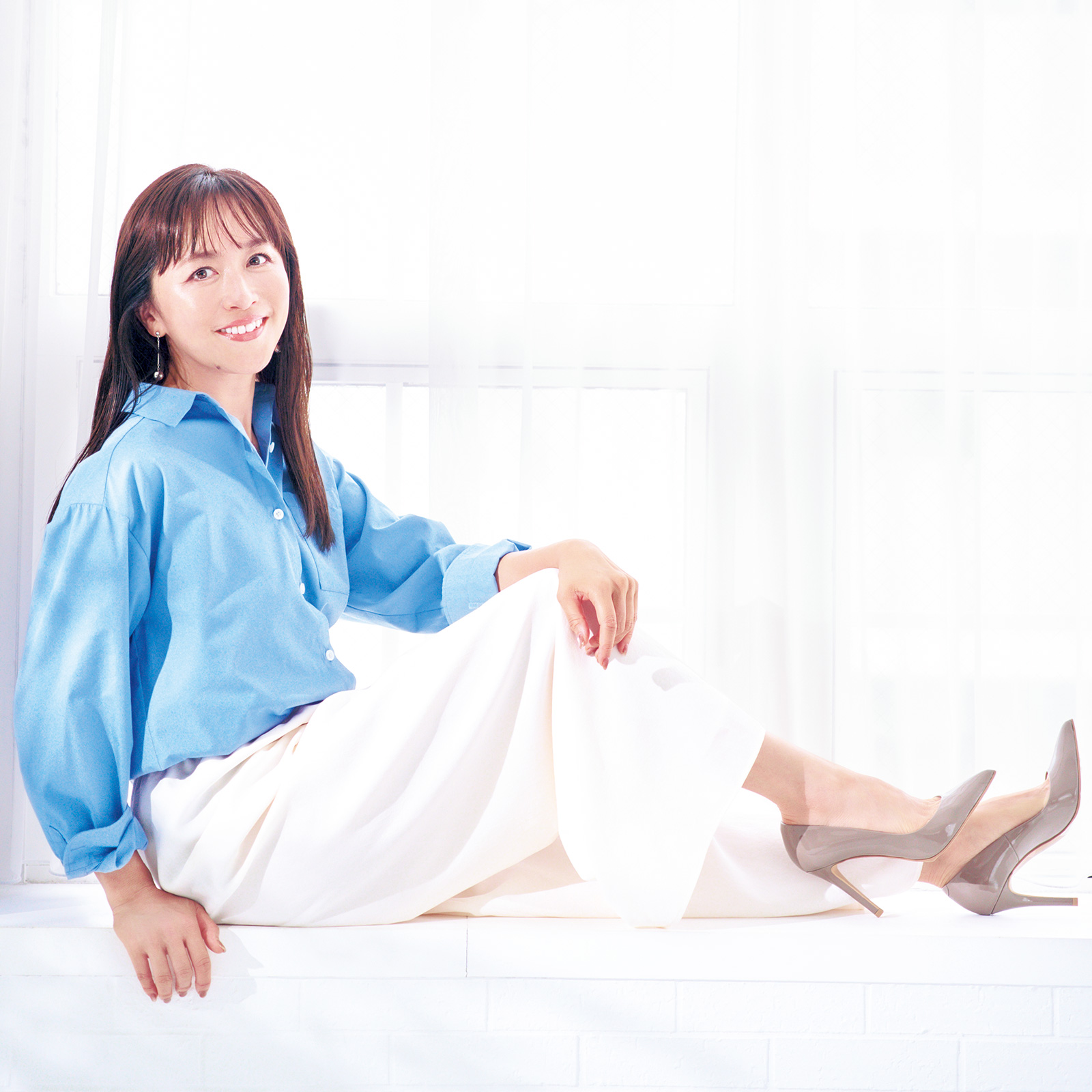 《衣装クレジット》シャツ¥14,900(So Close,/dinos) パンツ¥42,900(BOURGE/レリアン)パンプス¥18,150(ダイアナ/ダイアナ 銀座本店)ピアス¥6,600(アビステ)