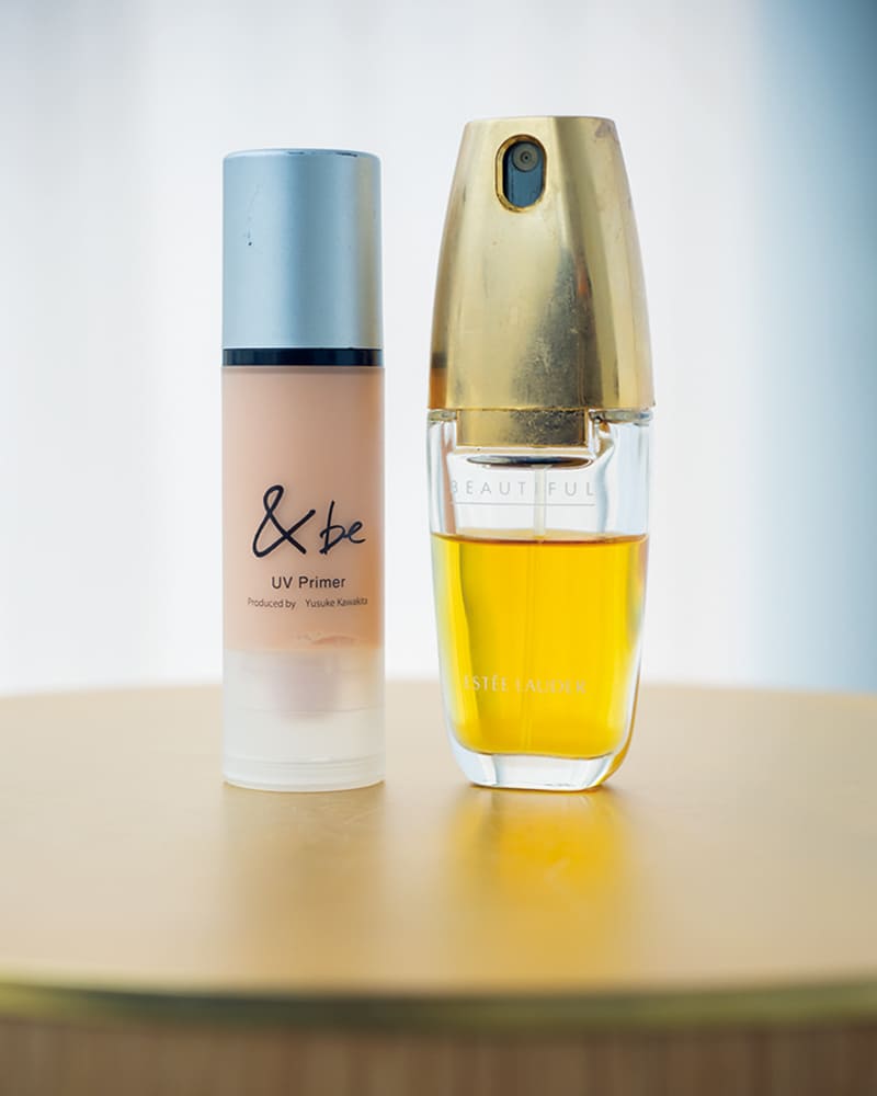 身だしなみとしてメークはしますが、こだわりは特にありません。ファンデーションはつけず、&beのUVプライマーリッチモイストのみ。香りはフレッシュ感のあるエスティ ローダー ビューティフルをずっと愛用しています。