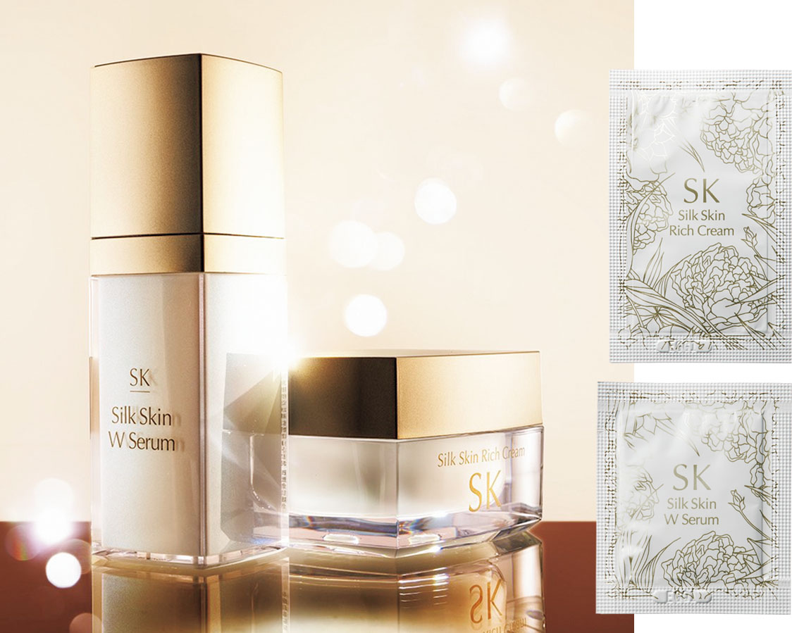 光老化に着目して、エイジング予防。SKシルクスキンWセラム 0.8ml、SKシルクスキンリッチクリーム 1.2g[ともに医薬部外品]各パウチ1包