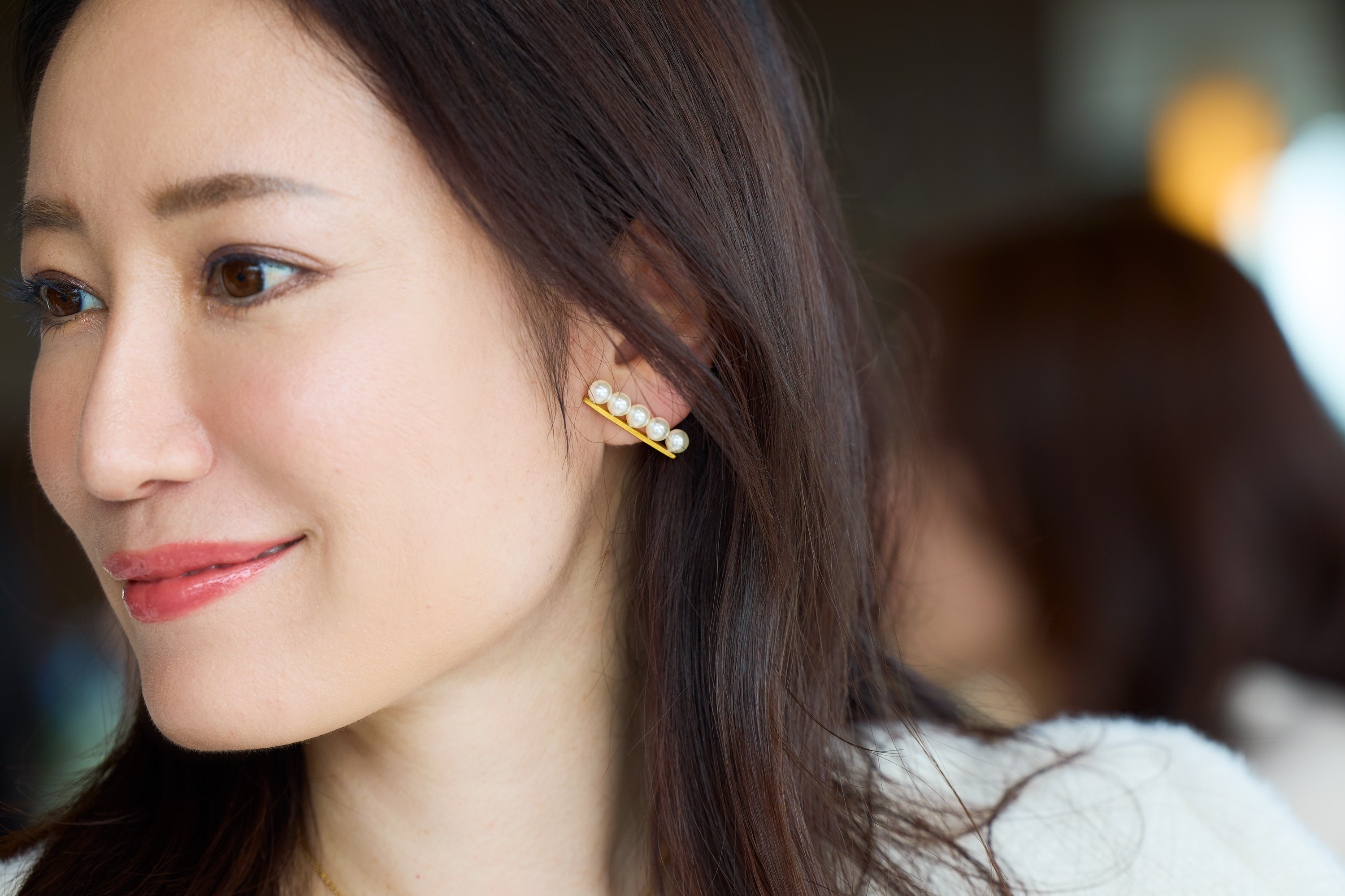 遠目にも映えるパールピアスで、耳元に華やぎを♡