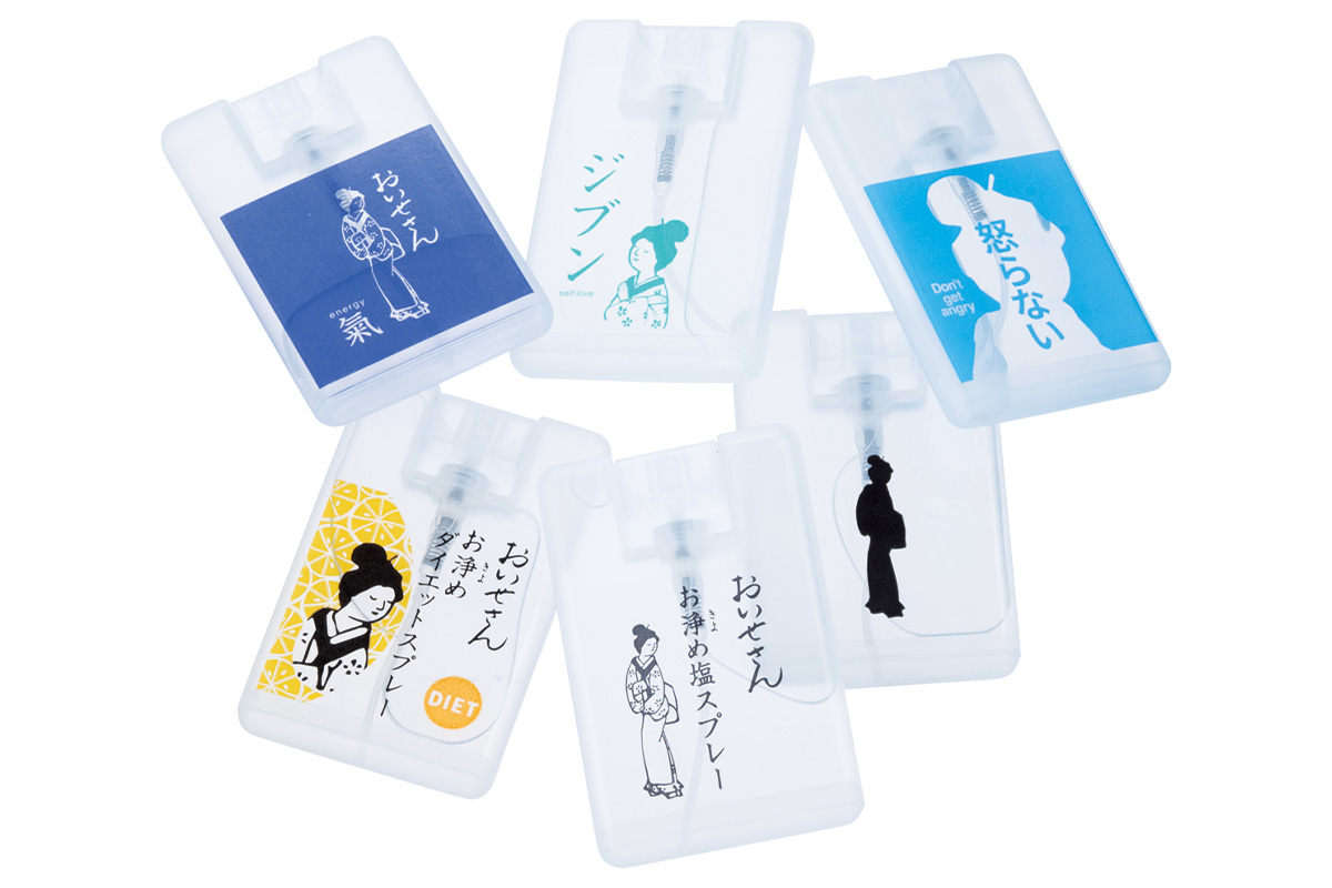 「仕事でどうにも苦手な人がいて、やり取りするたび疲弊。このスプレーを朝やモヤッとした時にシュッ。お守り代わりに持ち歩いています」左上から時計回りに:お浄め氣スプレー、同ジブンスプレー、同怒らないスプレー、同縁切スプレー、同塩スプレー、同ダイエットスプレー 各¥1,320(すべてマルチニーク)