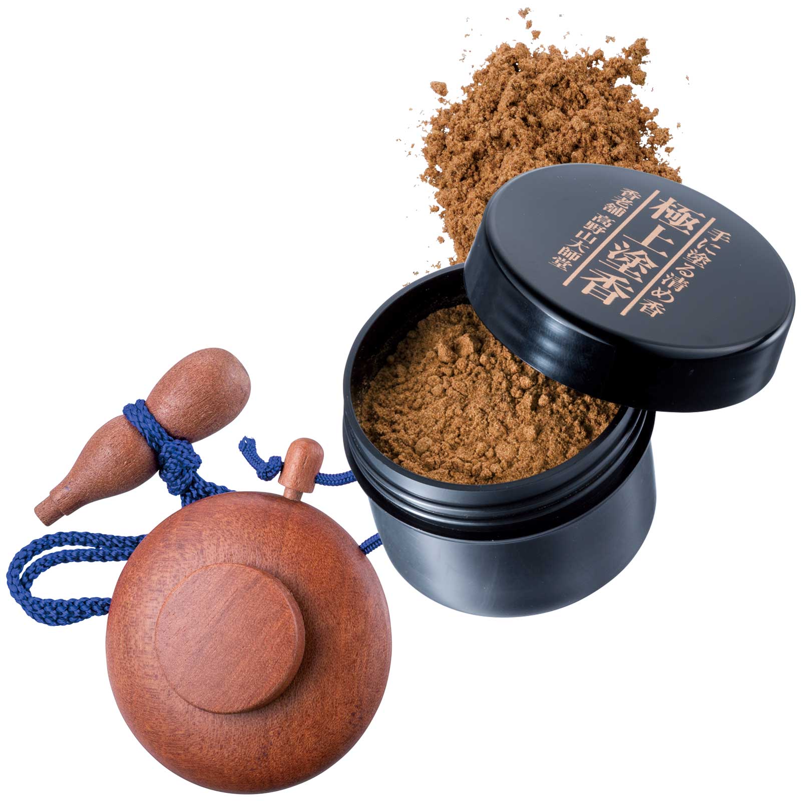 「人ごみや苦手な人に会う時は、塗香を少し手のひらに取り、両手ですり合わせ広げます。香りを楽しみながら深呼吸し、結界ができるイメージを持ちプロテクト。これで変な邪気を浴びない!と思っています」左:塗香入れ(桜)¥3,300、右:極上塗香15g(カップ入り)¥1,650(ともに高野山大師堂)