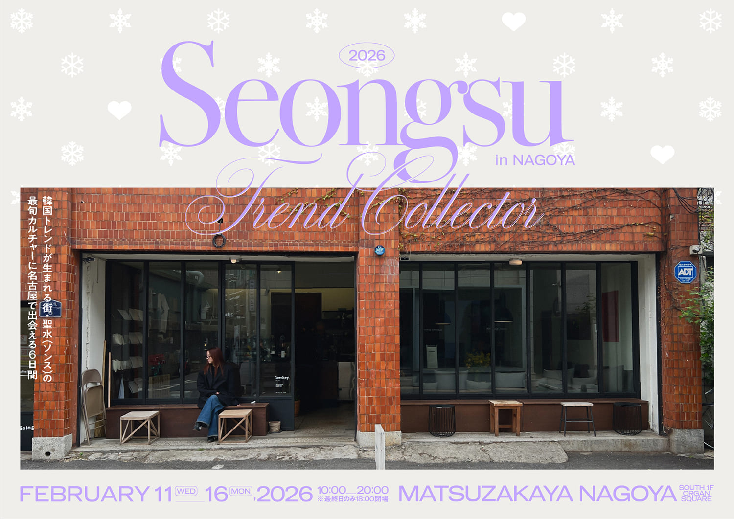 2026年2月11日(水・祝)~16日(月)の6日間、松坂屋名古屋店にて、光文社が主催する韓国の最新カルチャーを体感できる特別イベント「SEONGSU TREND COLLECTOR -gift edition- in NAGOYA」が開催されます!本イベントは今年、東京・大阪・仙台の3か所で開催され、「韓国好きの間で“最新カルチャーを体感できる!」と話題沸騰。名古屋初上陸ブランドを含めるソウル・聖水(ソンス)で人気のブランドが、一堂に集まります。今回の名古屋イベントは、バレンタインシーズンならではの特別企画にも注目のポイント!
