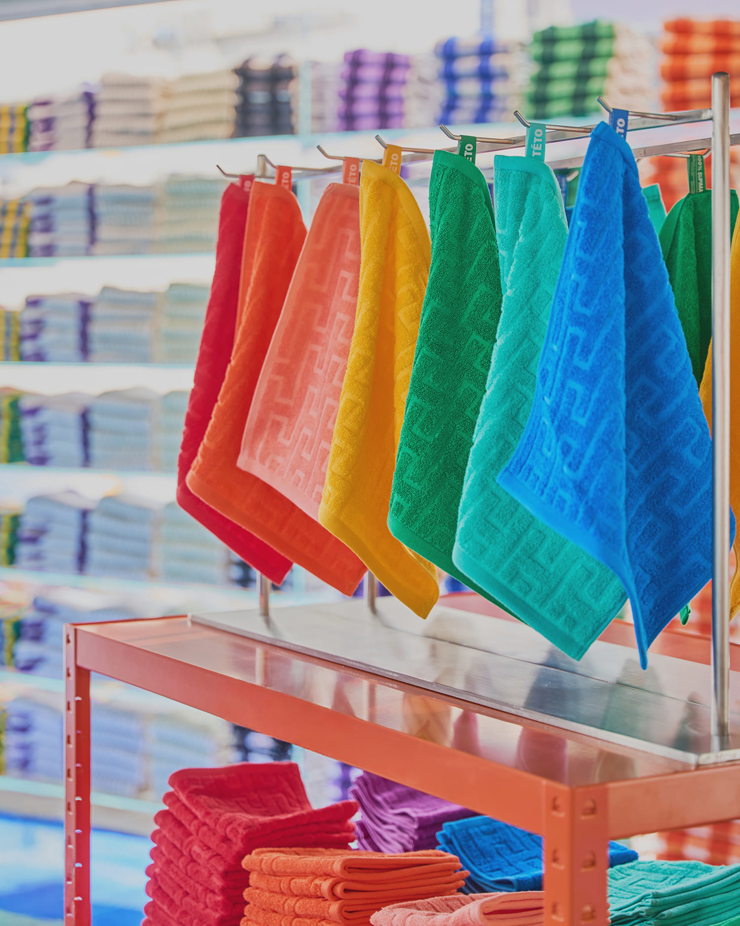 2023年、ソンスでローンチした「TÉTO(テト)」は、タオルを生活用品から小さなアートピースとして楽しめる存在へと変化させたブランドです。世界でわずか1%しか生産されないハイエンド素材「スーピマコットン」を使用したTÉTOのタオルは、柔らかな肌触りと鮮やかな発色が特徴。唯一無二のカラーとデザインで、新たなタオル体験を提供します。ソンスのフラグシップストアは、壁一面に敷き詰められたタオルが印象的で、美術館のような空間が話題となっています。