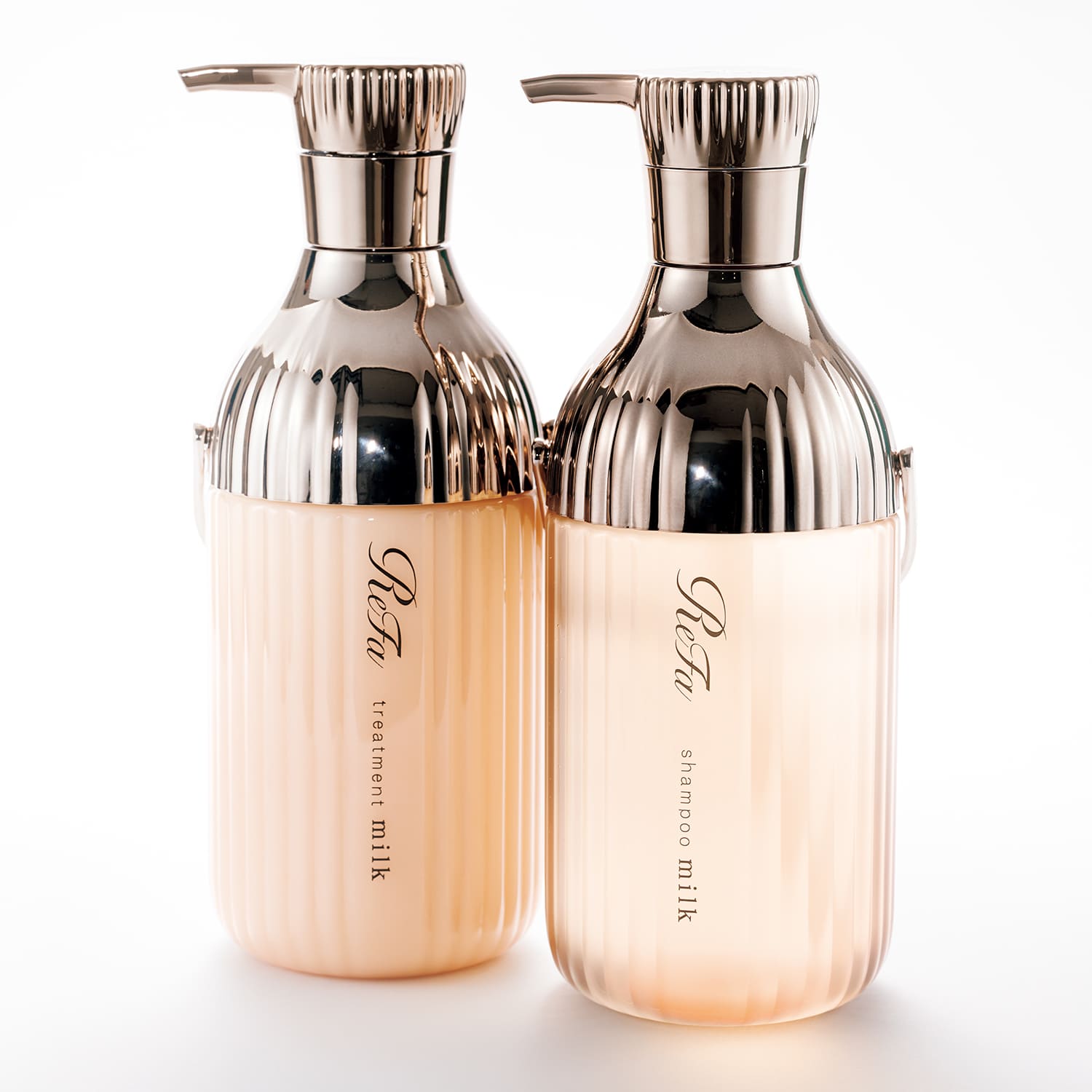 クセがあり乾燥しやすく、傷みやすい髪質は長年の悩み。これは天然ミルク由来のプロテインがハイダメージを補修し、トゥルンと滑らかな指どおりに。ツヤが戻ると肌までキレイに見えるから、大人こそヘアケアに注力してほしい。ReFa MILK PROTEIN SHAMPOO ROYAL 500ml ¥3,300、同 TREATMENT ROYAL 500g ¥3,300(MTG)