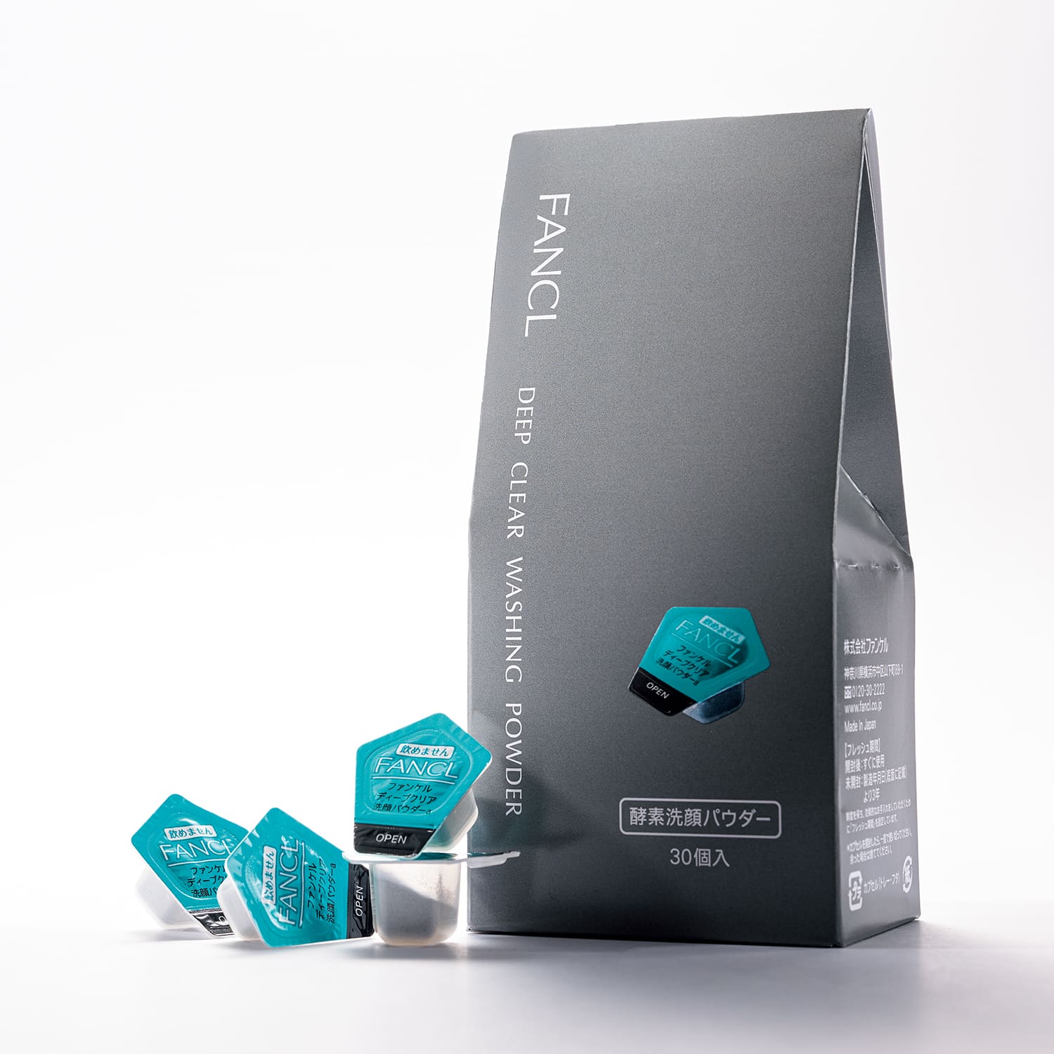 ターンオーバーが乱れると、どんなにいいスキンケアも入りにくい。この洗顔は酵素で古い角層を分解し、炭と吸着泥が毛穴汚れや皮脂をすっきりオフ。つっぱりにくく大人の肌にも使いやすい。週に数回の投入で肌がツルッと整います。皮脂が分泌される朝も酵素洗顔は◎。ディープクリア洗顔パウダー 30個入り ¥1,980(ファンケル)