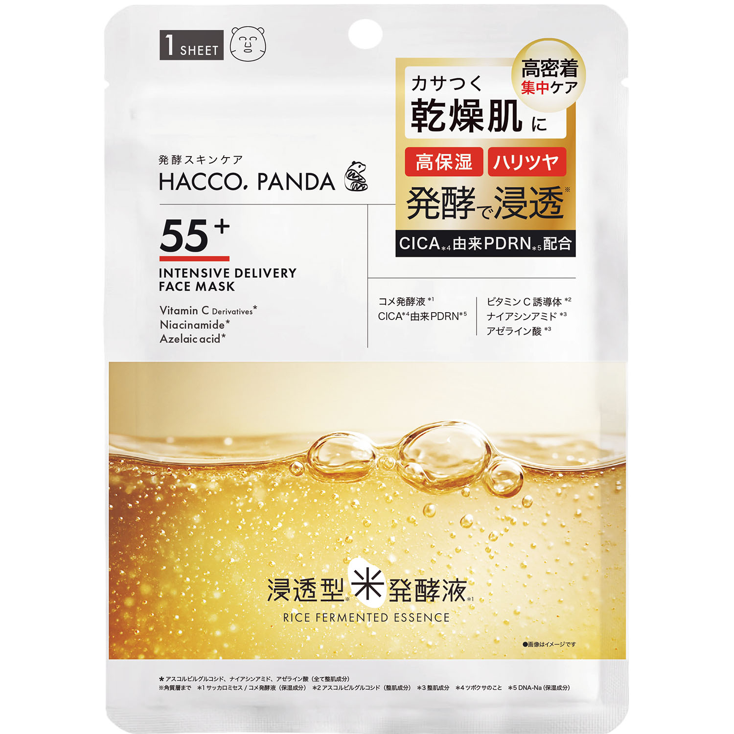 CICA由来のPDRN配合でぷるぷるに!ハッコウパンダ 発酵高浸透フェイスマスク 1枚入
