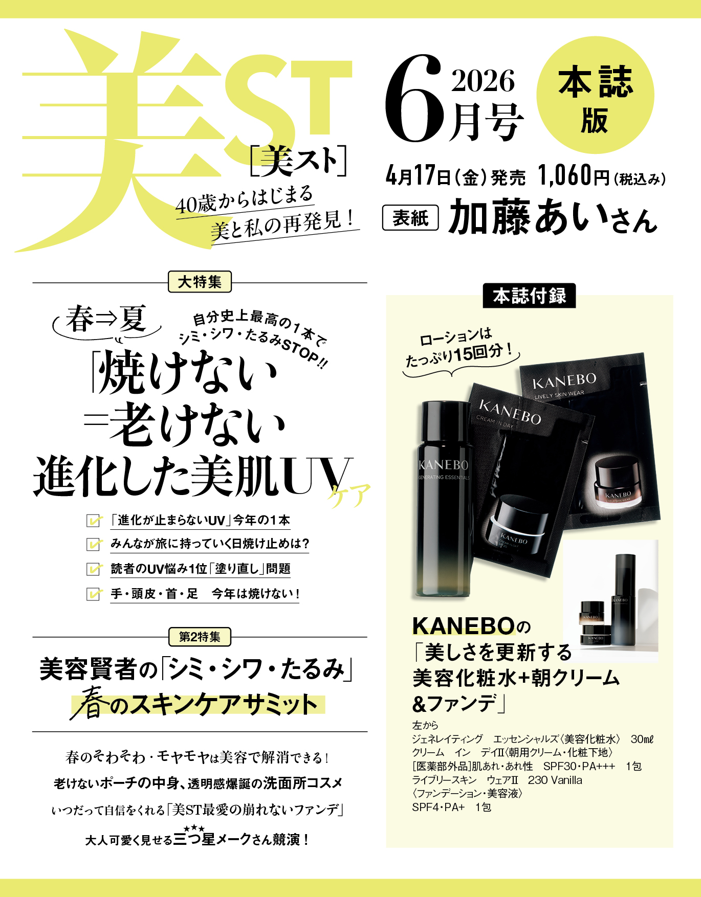 4月17日(金)発売の美ST2026年6月号は加藤あいさん&本田響矢さんが目印です!