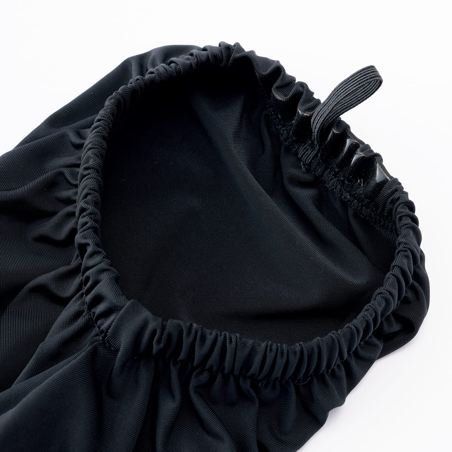 二の腕から肩の付け根までしっかりカバーし、上から降り注ぐ紫外線をブロック。肩まですっぽり覆うロング丈で、運転中や旅行先での〝うっかり焼け〟も防ぎます。伸縮性に優れ、Lサイズまで対応のストレスフリーな着け心地。