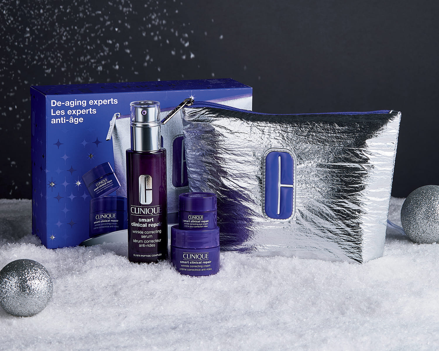 美しく引き締まった弾力美肌をもたらしてくれると人気の「スマートリペア」シリーズ。朝晩使える肌に優しいレチノール誘導体配合のエイジングケア美容液「スマート リペア セラム」現品に、「スマート リペア クリーム」と「スマート リペア アイ クリーム」がセットされたお得なキット。輝きに満ちた肌でホリデーを迎えて。クリニーク スマート リペア セラム 50 セット 26 ¥16,720(クリニーク)