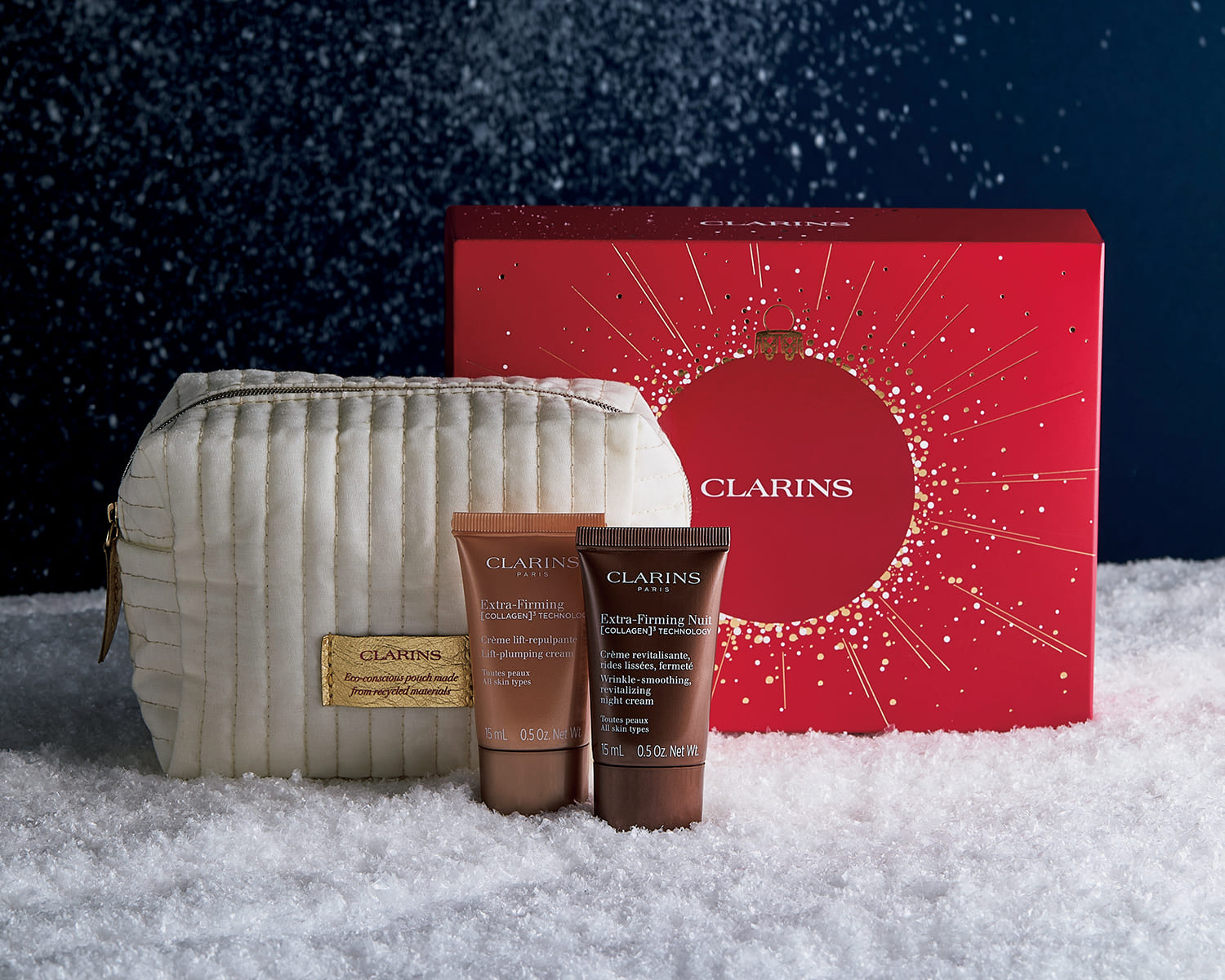 今年リニューアルした「ファーミング EX」シリーズのクリームがホリデー限定のトライアルサイズで登場。植物の力を凝縮した[CLG]3テクノロジーで毛穴が目立たないなめらか肌に導くクリームと、夜間特有の肌メカニズムに着目したナイトクリームをセット。一日中潤いで満たされるから乾燥が気になるこの時期のケアにおすすめ。オリジナルポーチつき。ファーミングEX ホリデーセット¥4,950(クラランス)