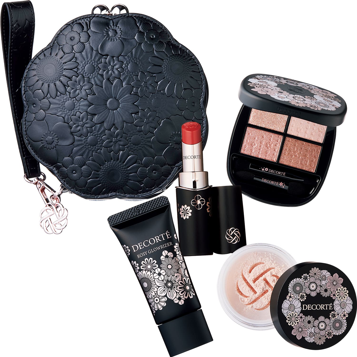 華やぐ季節にマッチするきらめきと、顔立ちに溶け込むさりげない発色で上品な仕上がりが叶うメークコレクション。誰でも使いやすいベージュピンクのアイシャドウ、血色感が続くコーラルレッドのスティックルージュ、肌に透明感を与えるプライマー、繊細パールを含んだフェイスパウダー、オリジナルポーチがセットに。コスメデコルテ エターナル ブルーム コレクション ¥9,350(コスメデコルテ)
